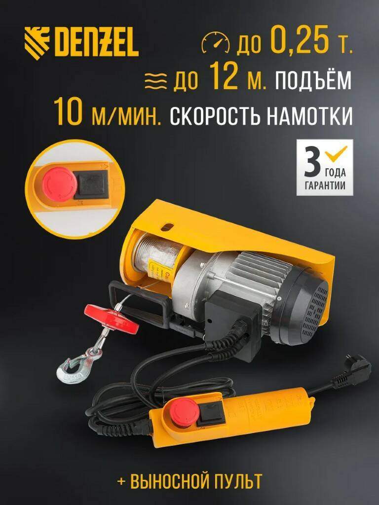 Тельфер электрический DENZEL TF-500, 0,5 т, 1020 Вт