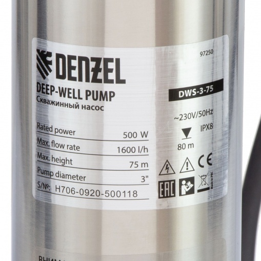 Садовый поверхностный насос GP 600, 600 Вт, 3000 л/ч, подъем 35 м, пластик DENZEL 97201