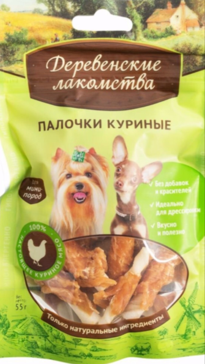 Лакомство "Деревенские лакомства" для собак мини-пород, палочки куриные, 55 г