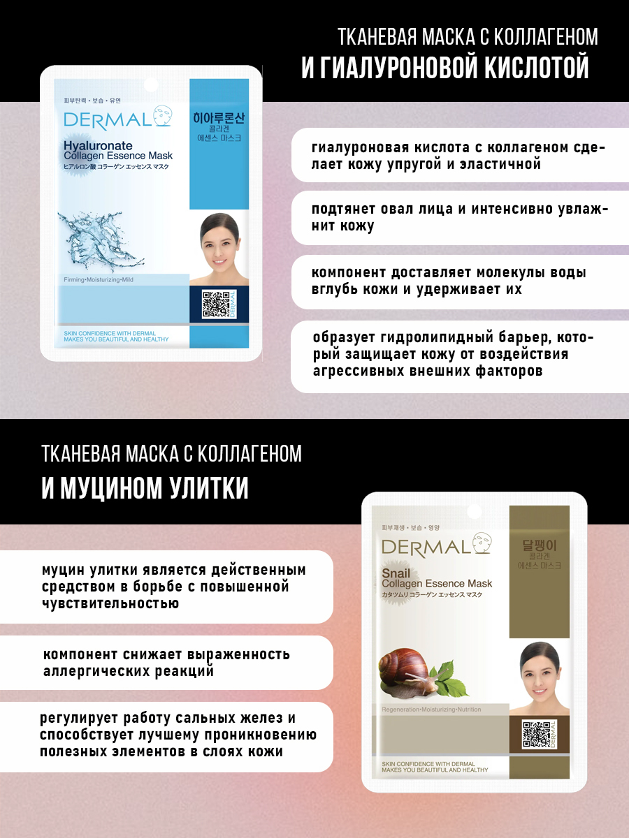 DERMAL Hyaluronate Collagen Essence Mask Тканевая маска с коллагеном и гиалуроновой кислотой