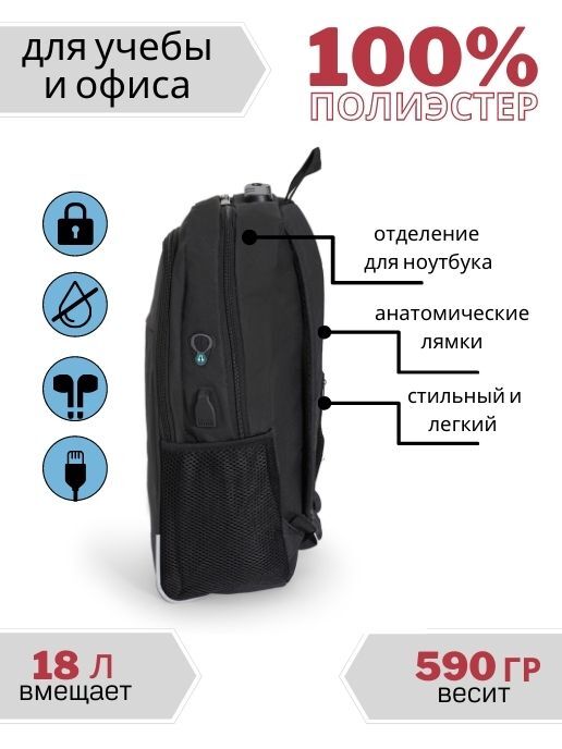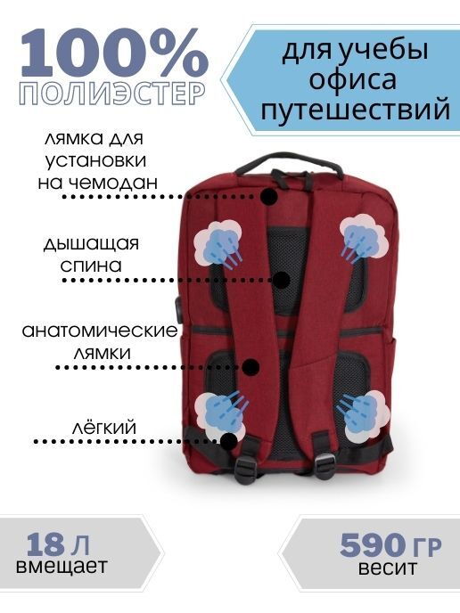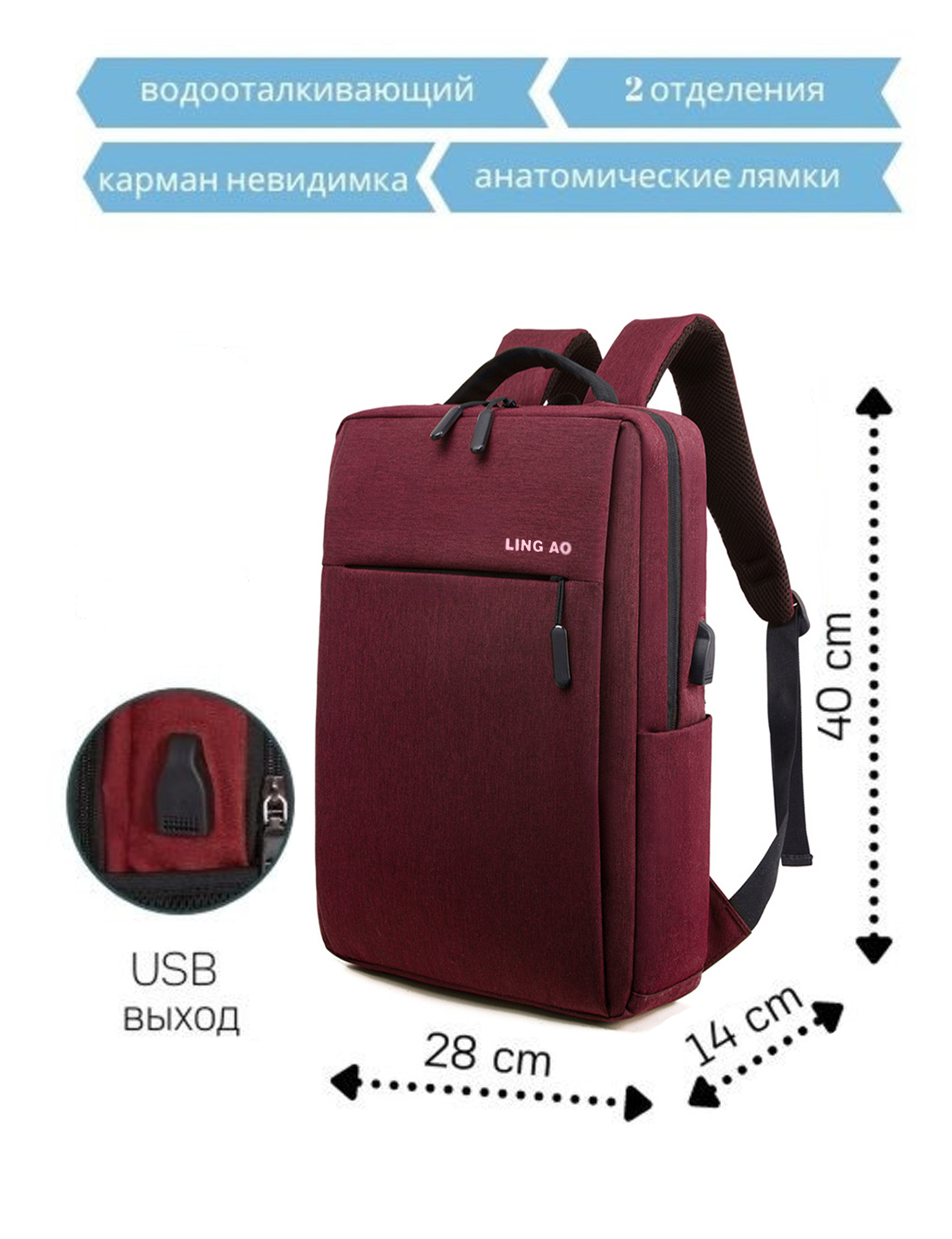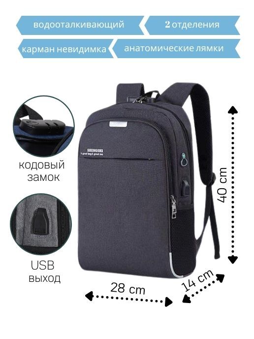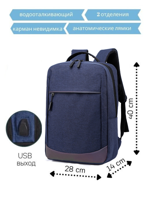Школьный рюкзак USB / Городской рюкзак USB / Офисный рюкзак USB / USB рюкзак для ноутбука / синий