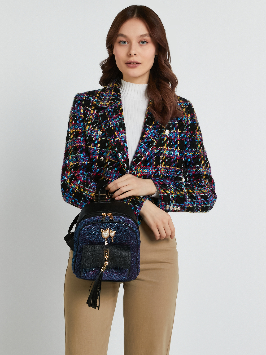 Рюкзак женский, для подростка, маленький, блестящий, сумка для девочки, с котиком, в детский сад