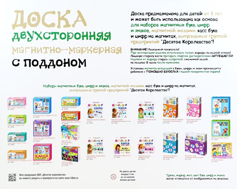 Доска двухсторонняя магнитно-маркерная с поддоном
