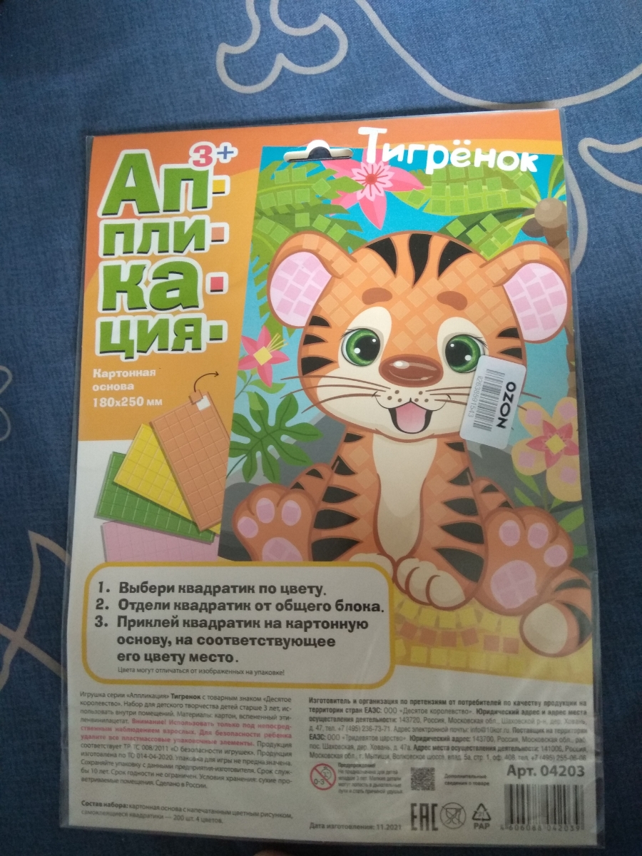 Аппликация для детей "Тигренок" (детский набор для творчества-аппликации для малышей)