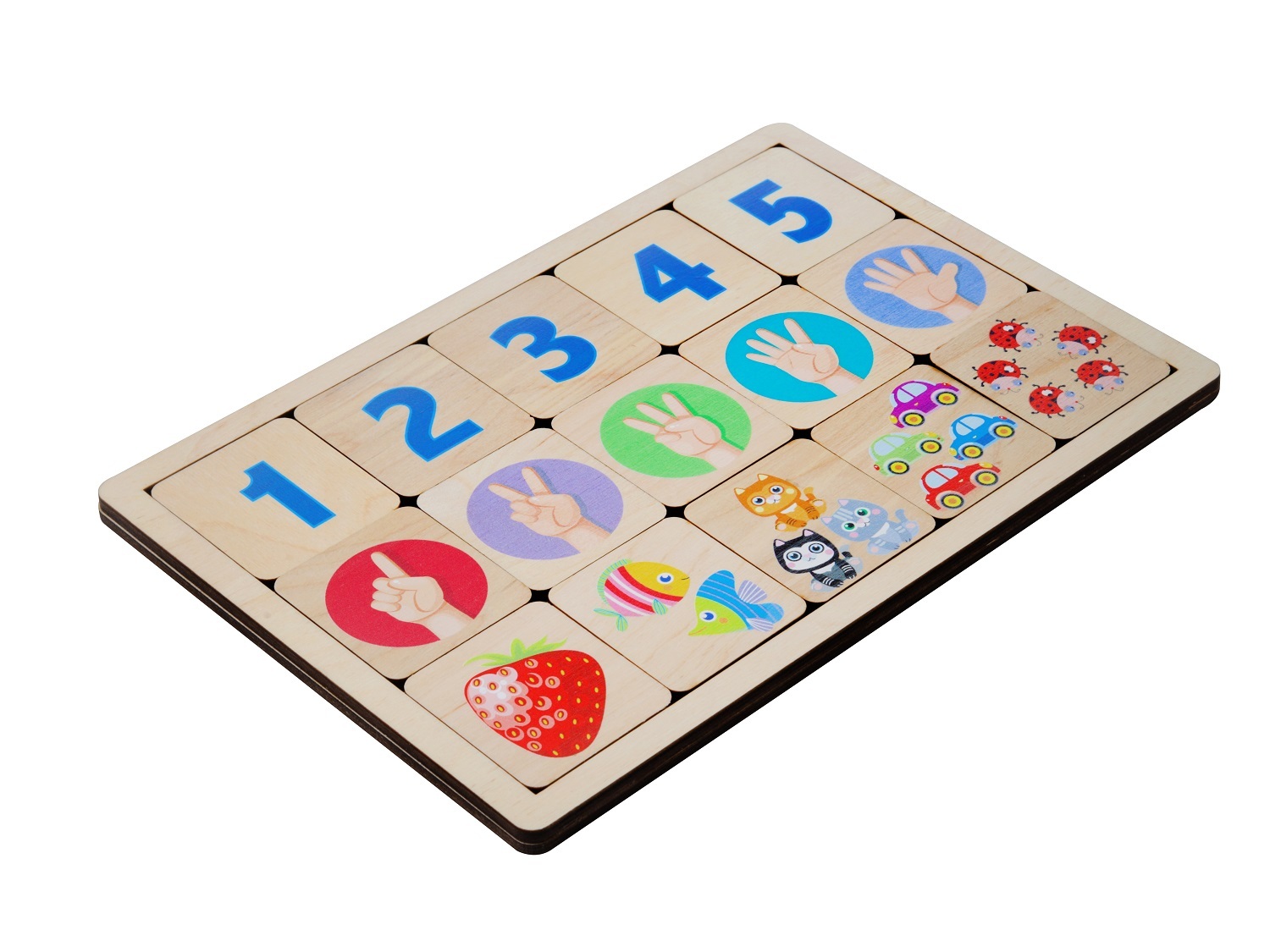 Развивающая деревянная игра пазл для малышей "Считаем до пяти" (Развивающие пазлы для маленьких)