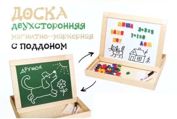 Доска двухсторонняя магнитно-маркерная с поддоном. Магнитная мозаика, 84 элемента, неокрашенная