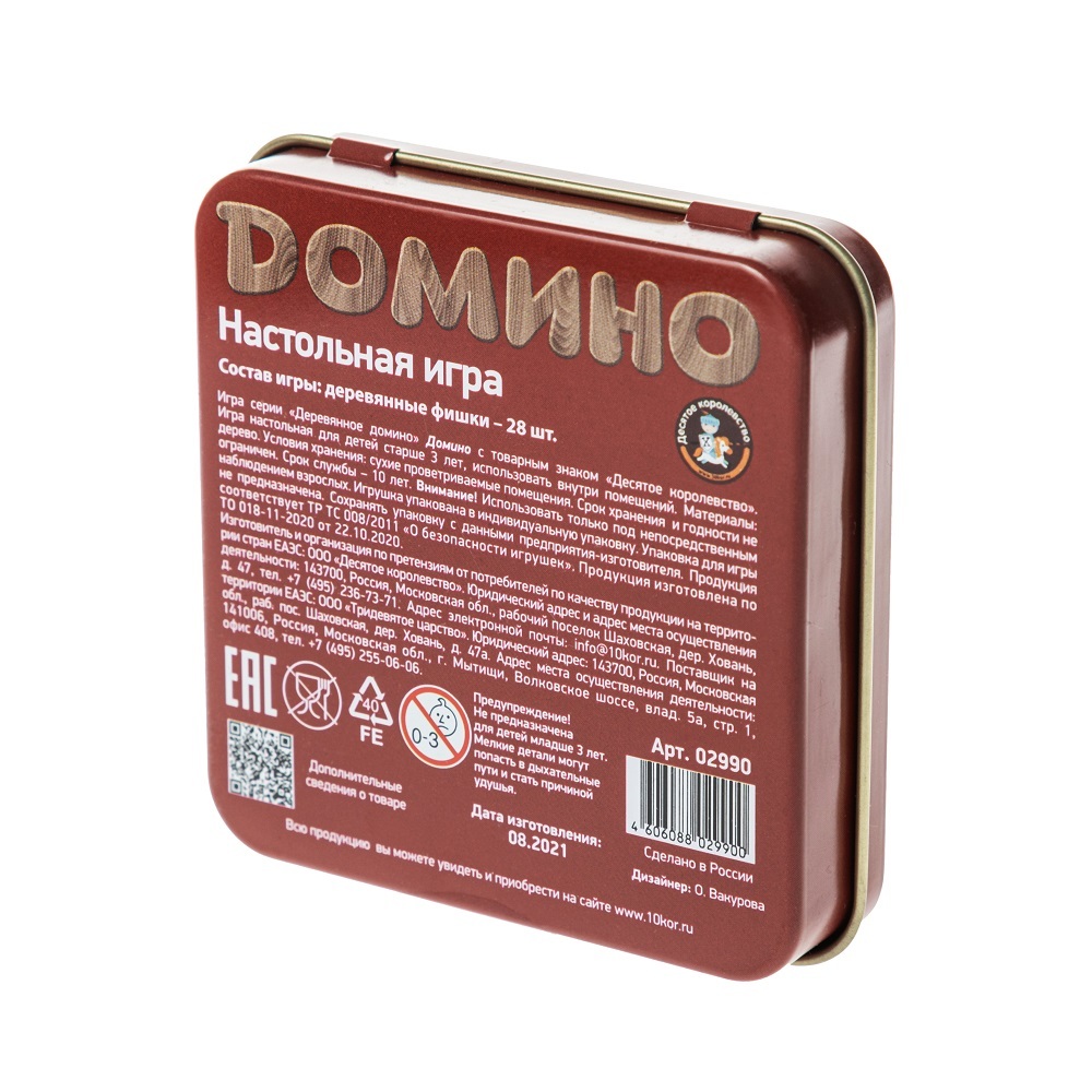 Деревянное домино в жестяной коробочке серии Игры в табакерке
