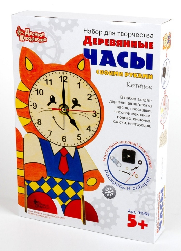 Набор для творчества. Часы деревянные своими руками (с красками). Котенок