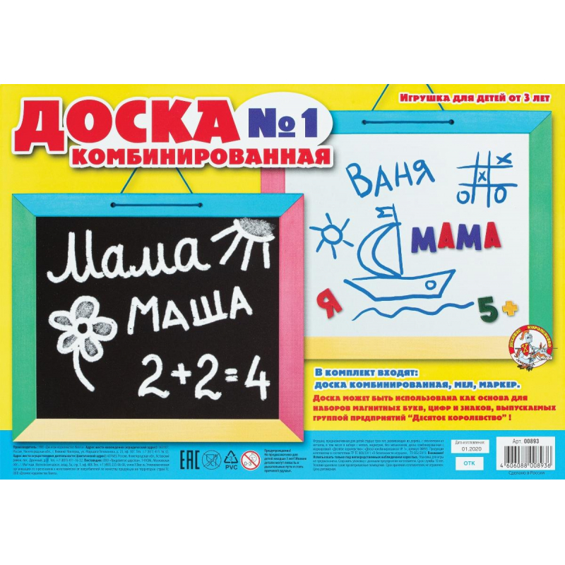 Доска меловая магнитно-маркерная двустор.46x41см, с мелом,маркер,салф.00893