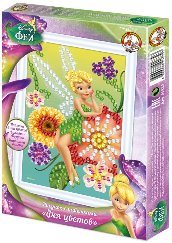Рисунок с пайетками "Феи. Фея цветов" (А4) Дисней (Детский набор для творчества)