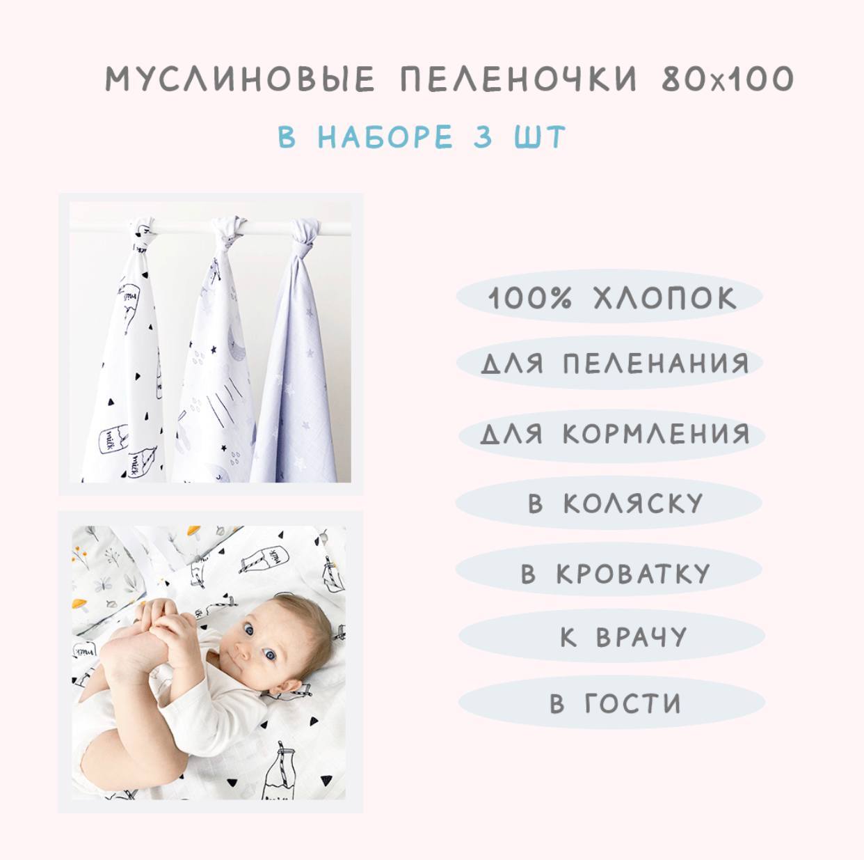 Пеленка крестильная Детский Бум 75 х 100 см, Муслин, 3 шт