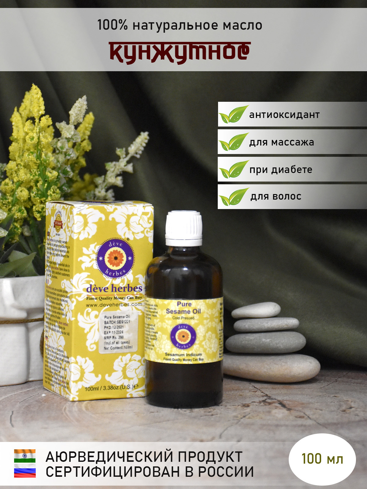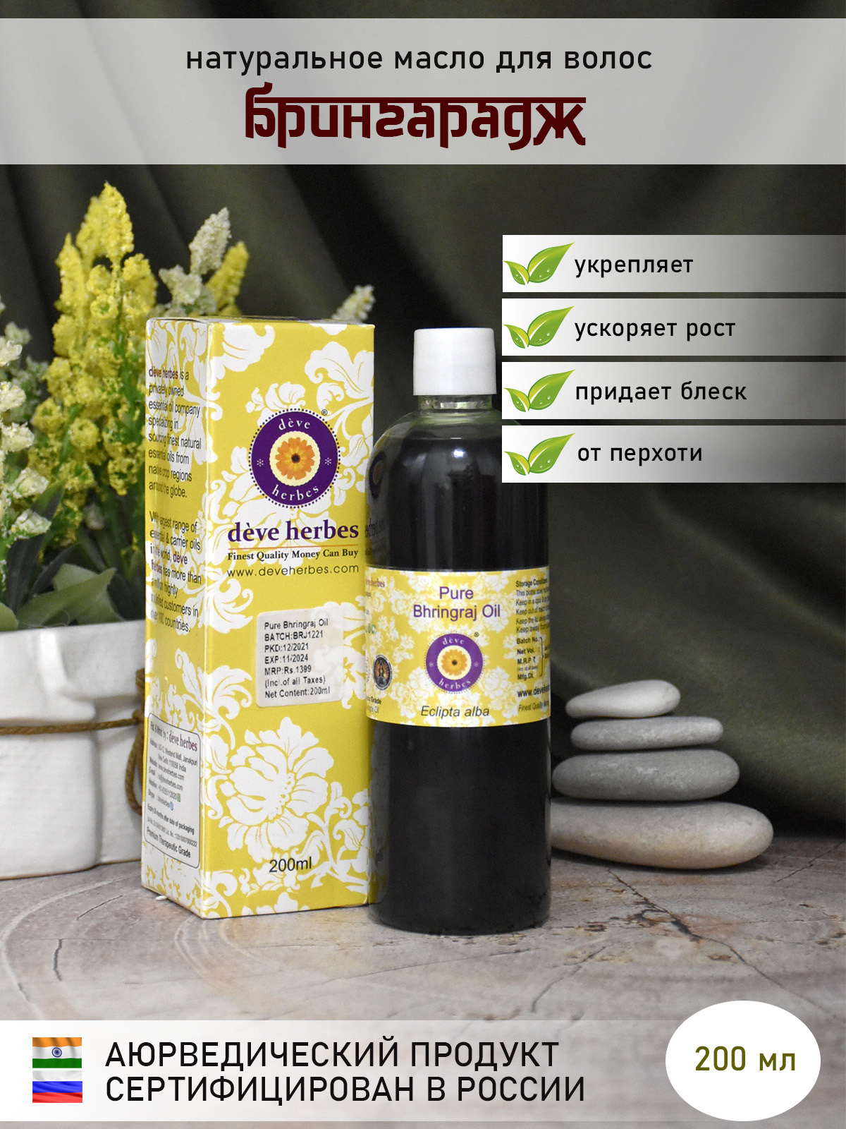 Натуральное масло для укрепления и роста волос Deve Herbes Pure Bhringraj Oil Брингарадж 200 мл