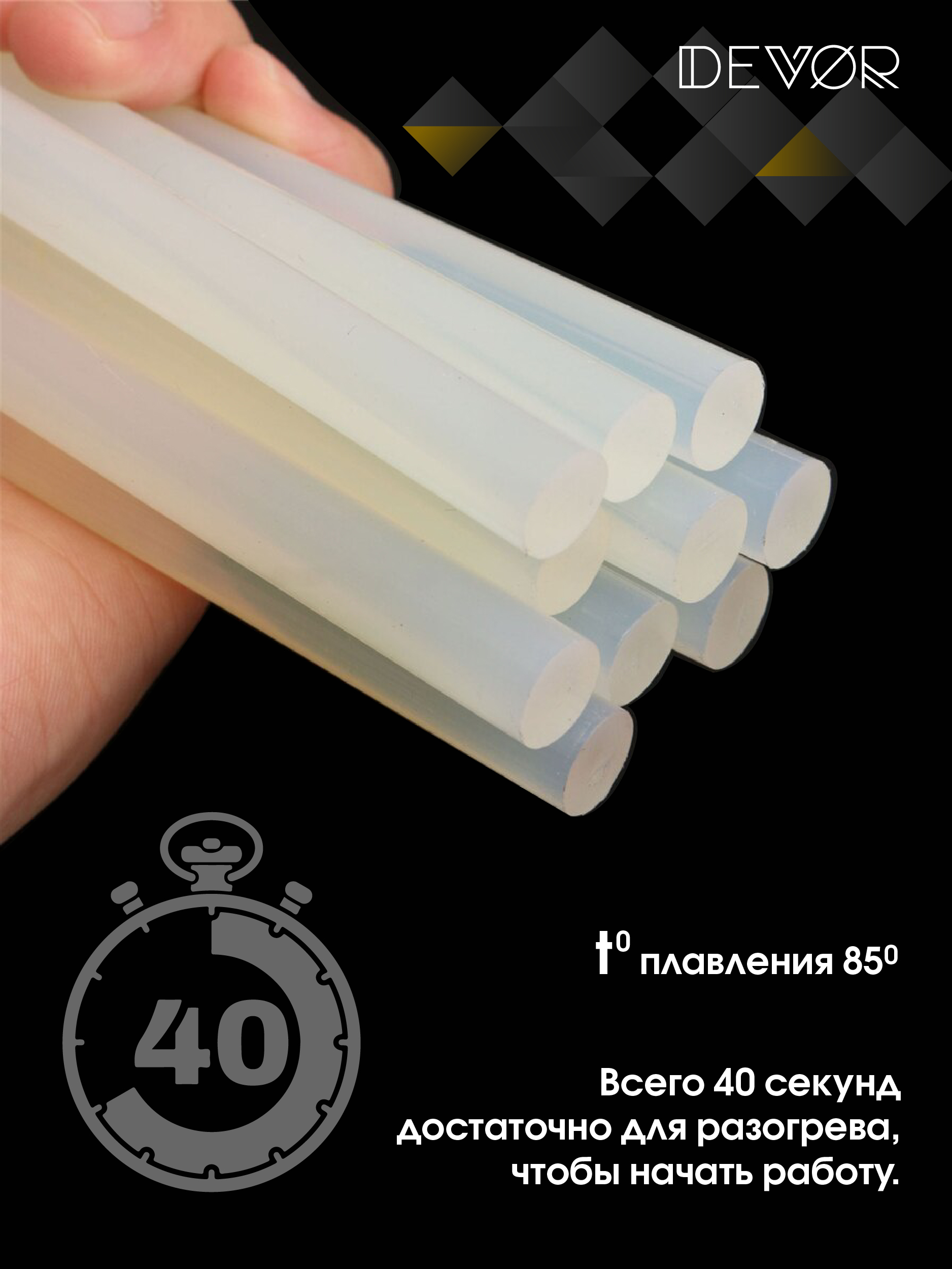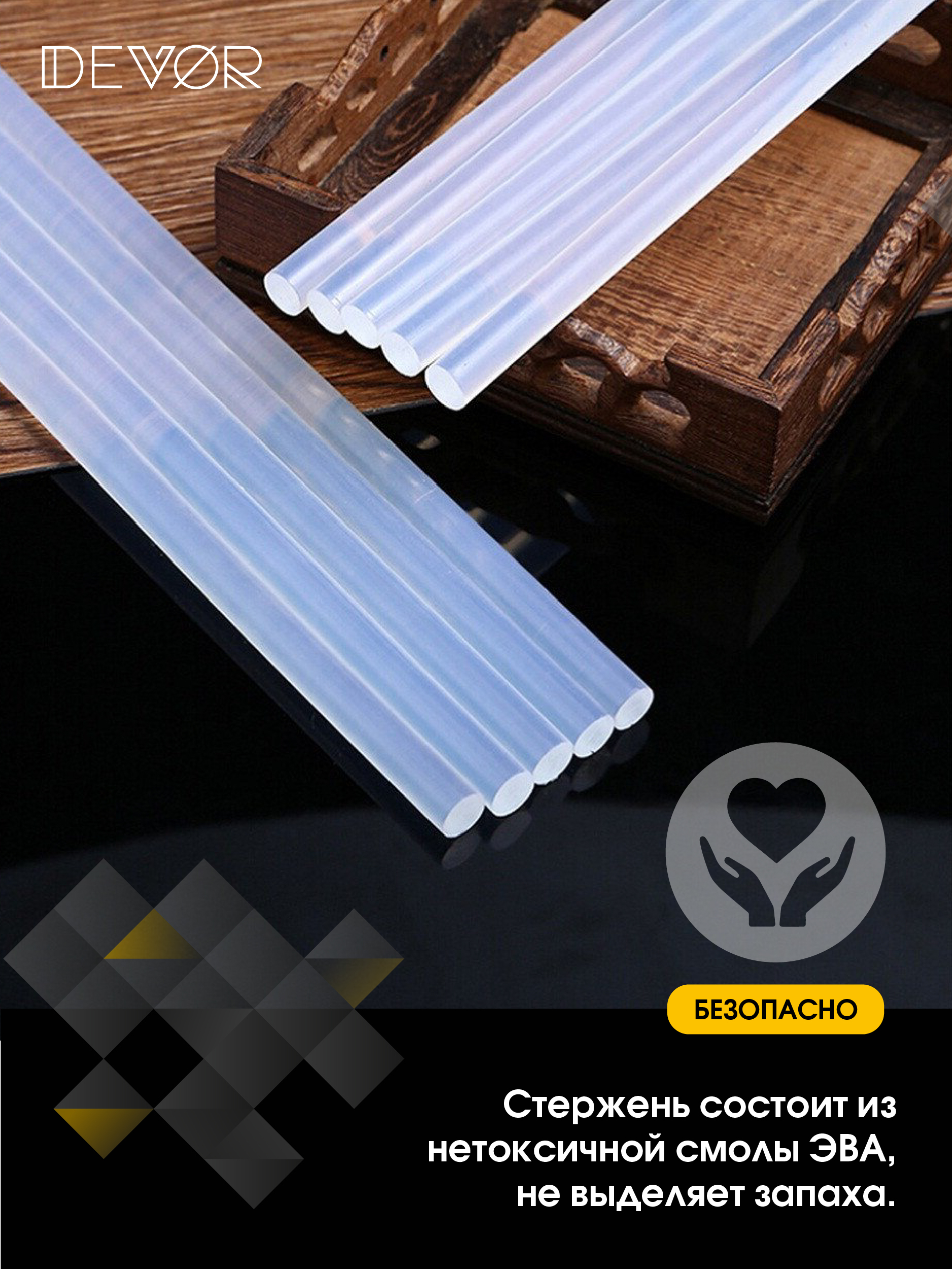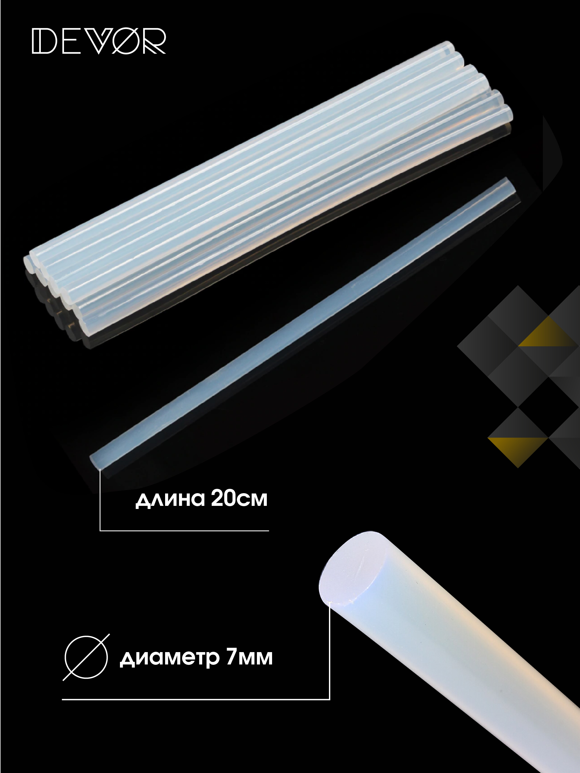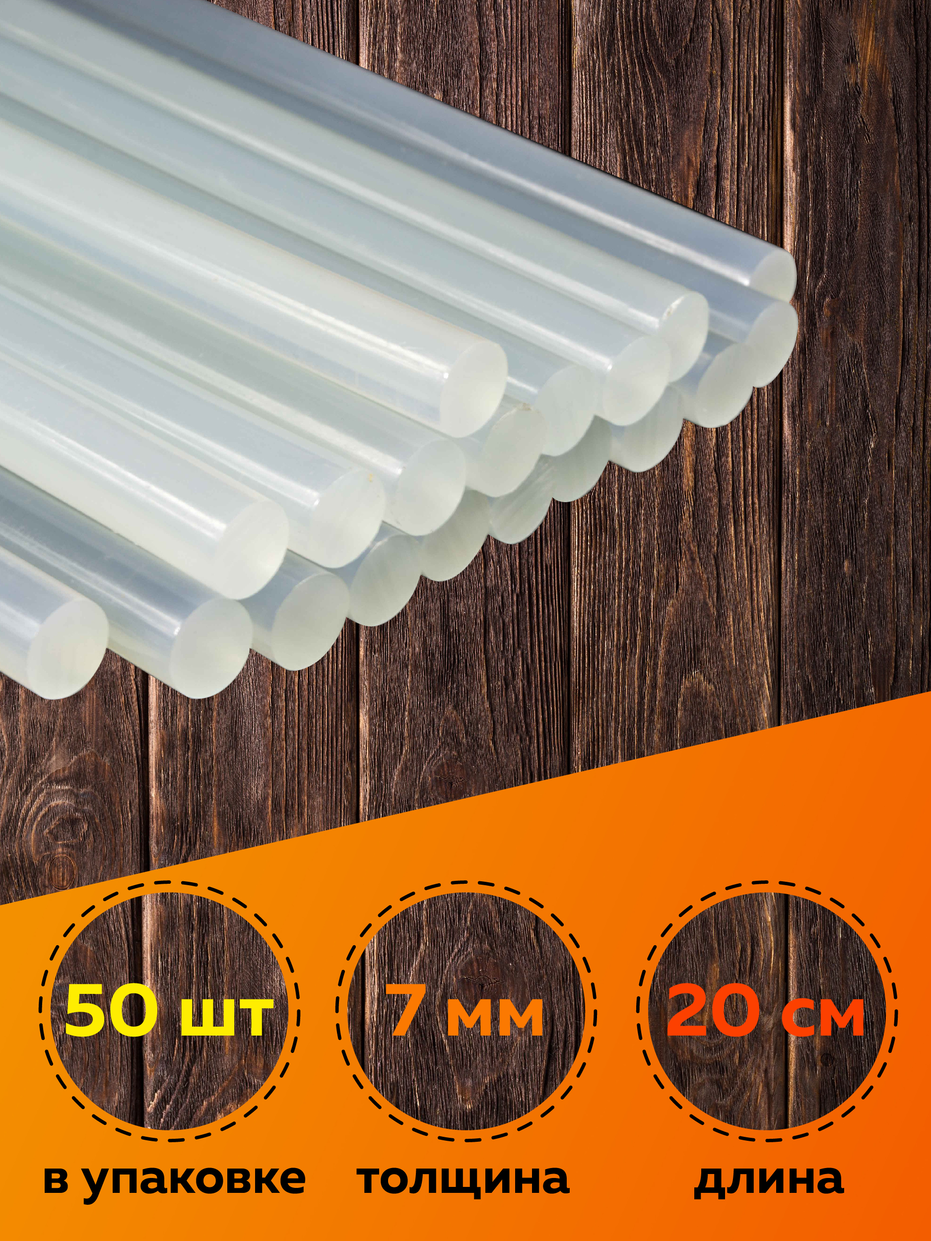 Клеевой стержень 7мм 20см, прозрачный, 10шт / Клеевые стержни