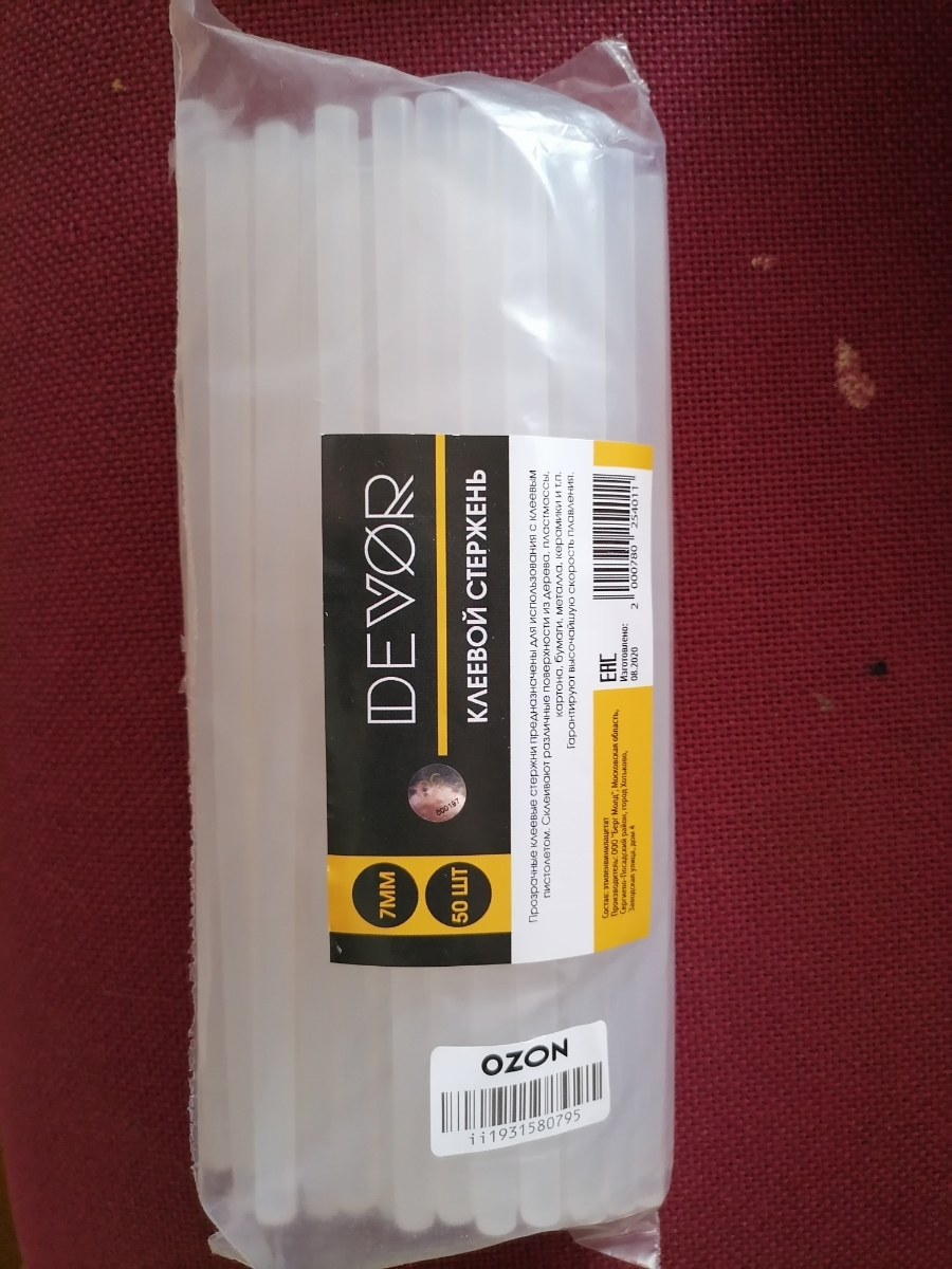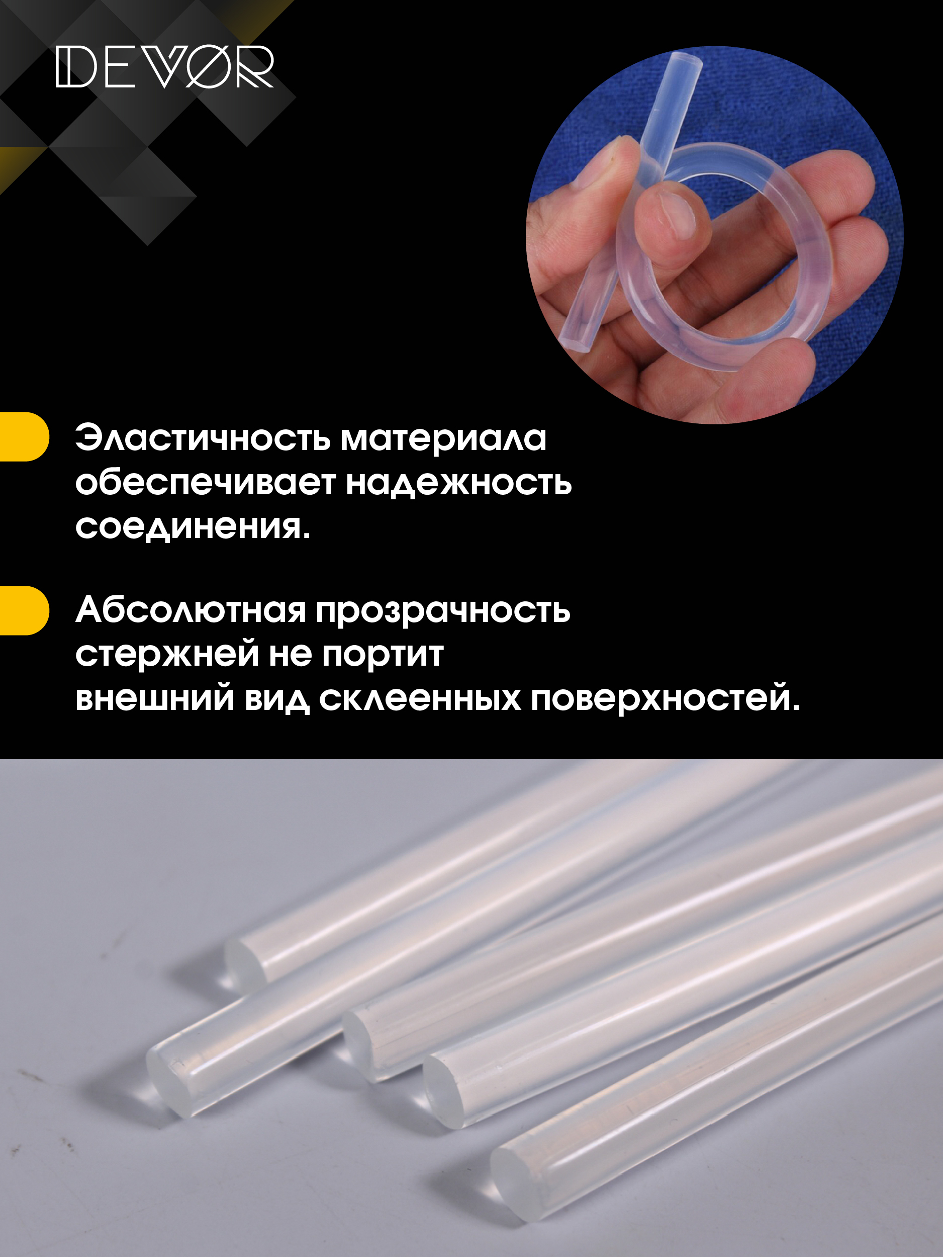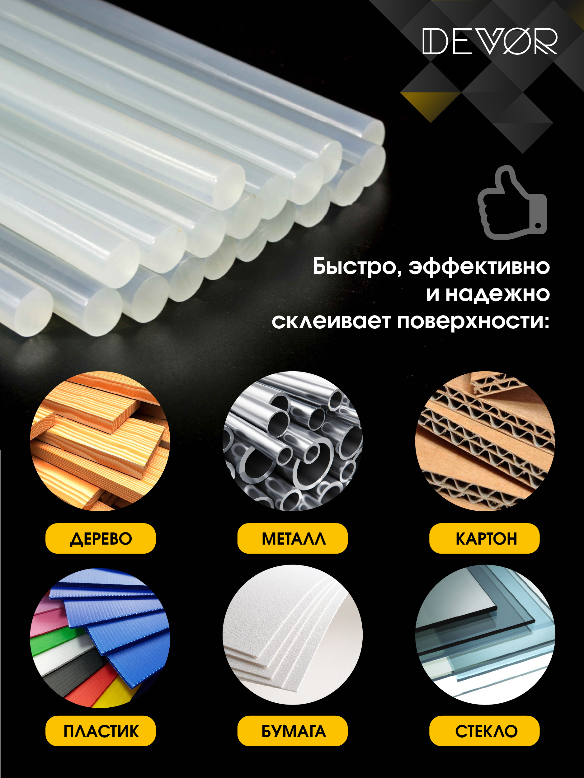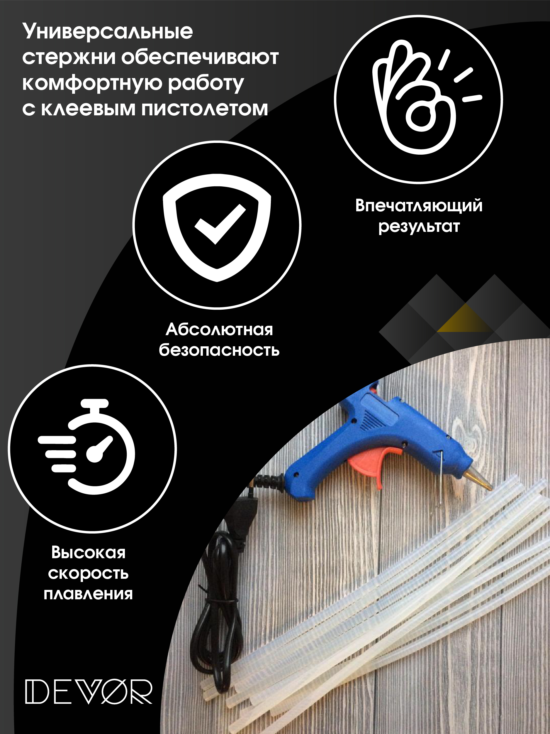 Клеевой стержень 7мм 20см, прозрачный, 10шт / Клеевые стержни