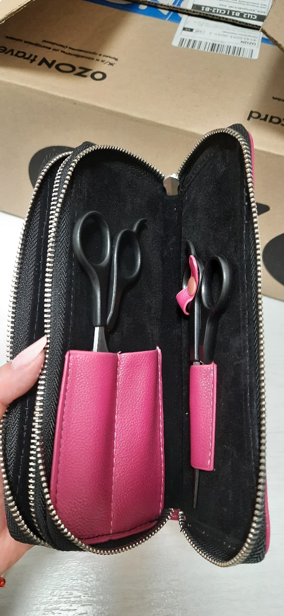 DEWAL Футляр для ножниц, полимерный материал, двойной, черно-розовый 9х21см