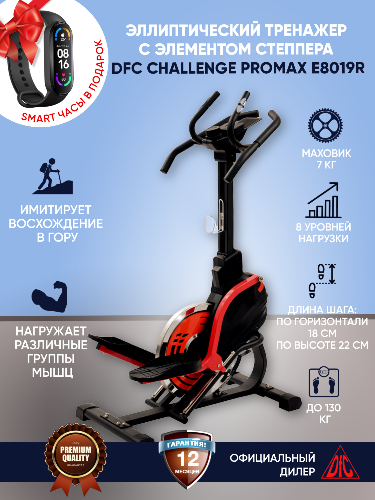 Эллиптический тренажер с элементом степпера DFC CHALLENGE ProMAX E8019СR