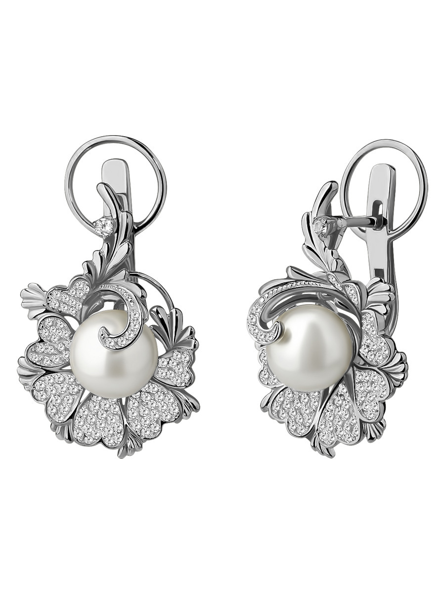 Ди АРС Серьги Камилла из серебра с натуральным культивированным жемчугом и фианитами