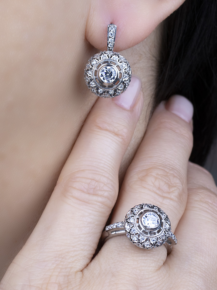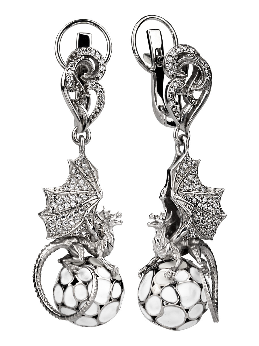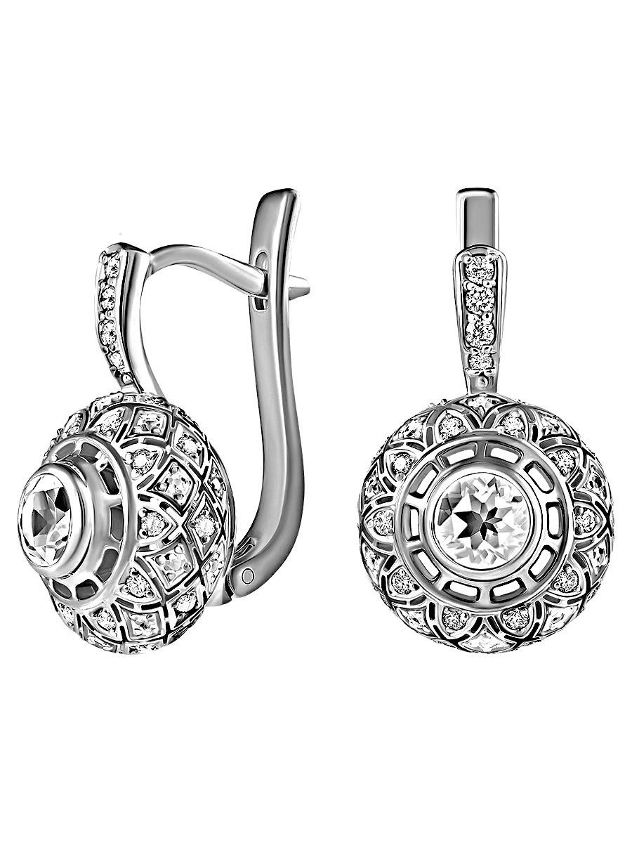 Ди АРС Серьги Классика из родированного серебра 925 пробы с фианитами