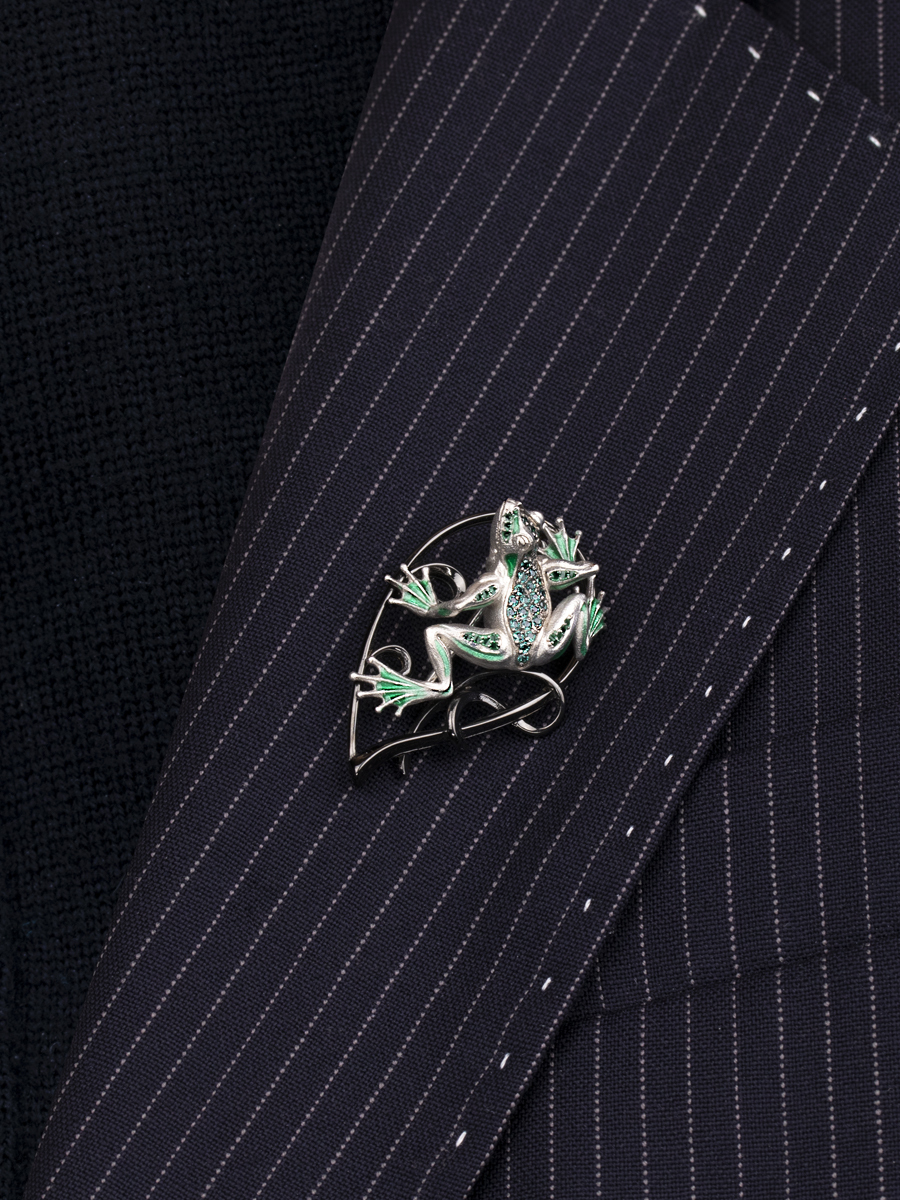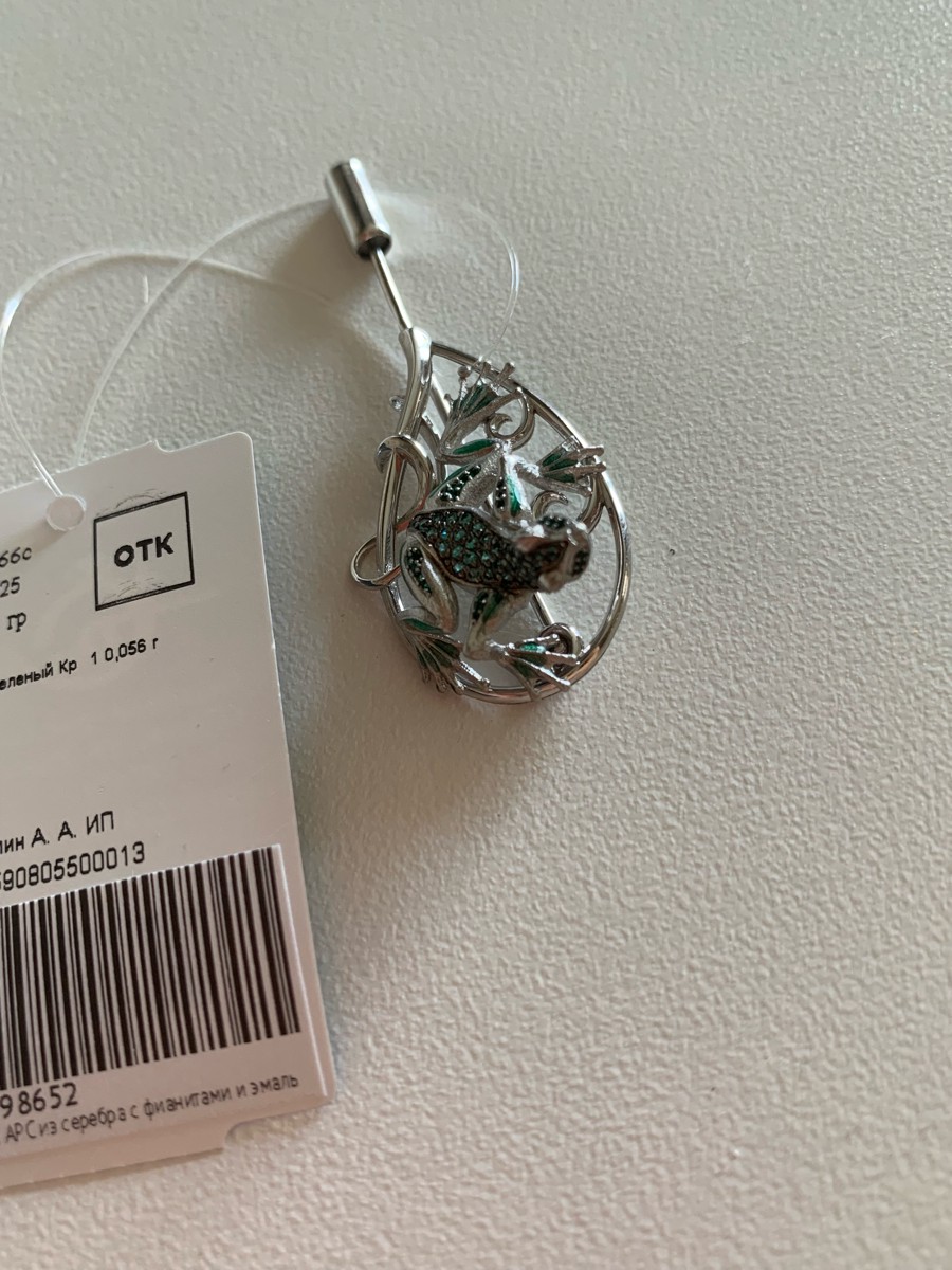 Ди АРС Брошь с лягушкой Путешествие из серебра с фианитами и эмалью