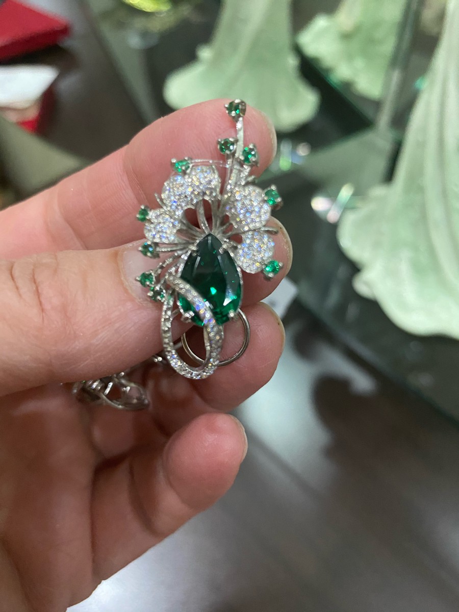 Ди АРС Брошь Спичка из серебра с изумрудом синтетическим и фианитами