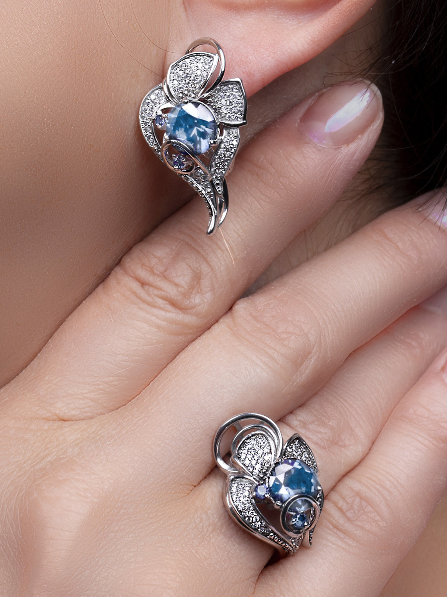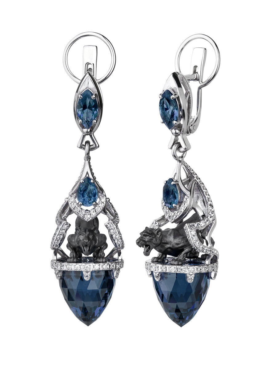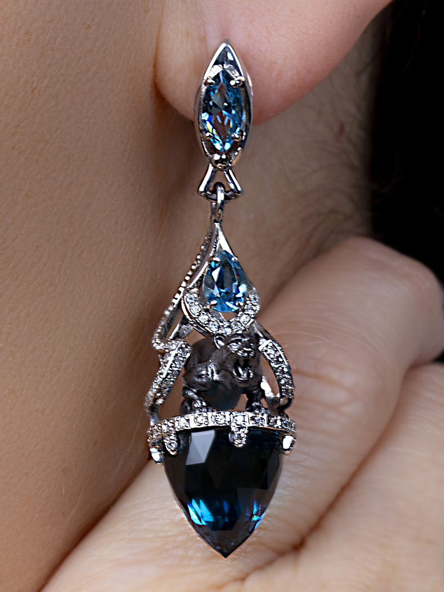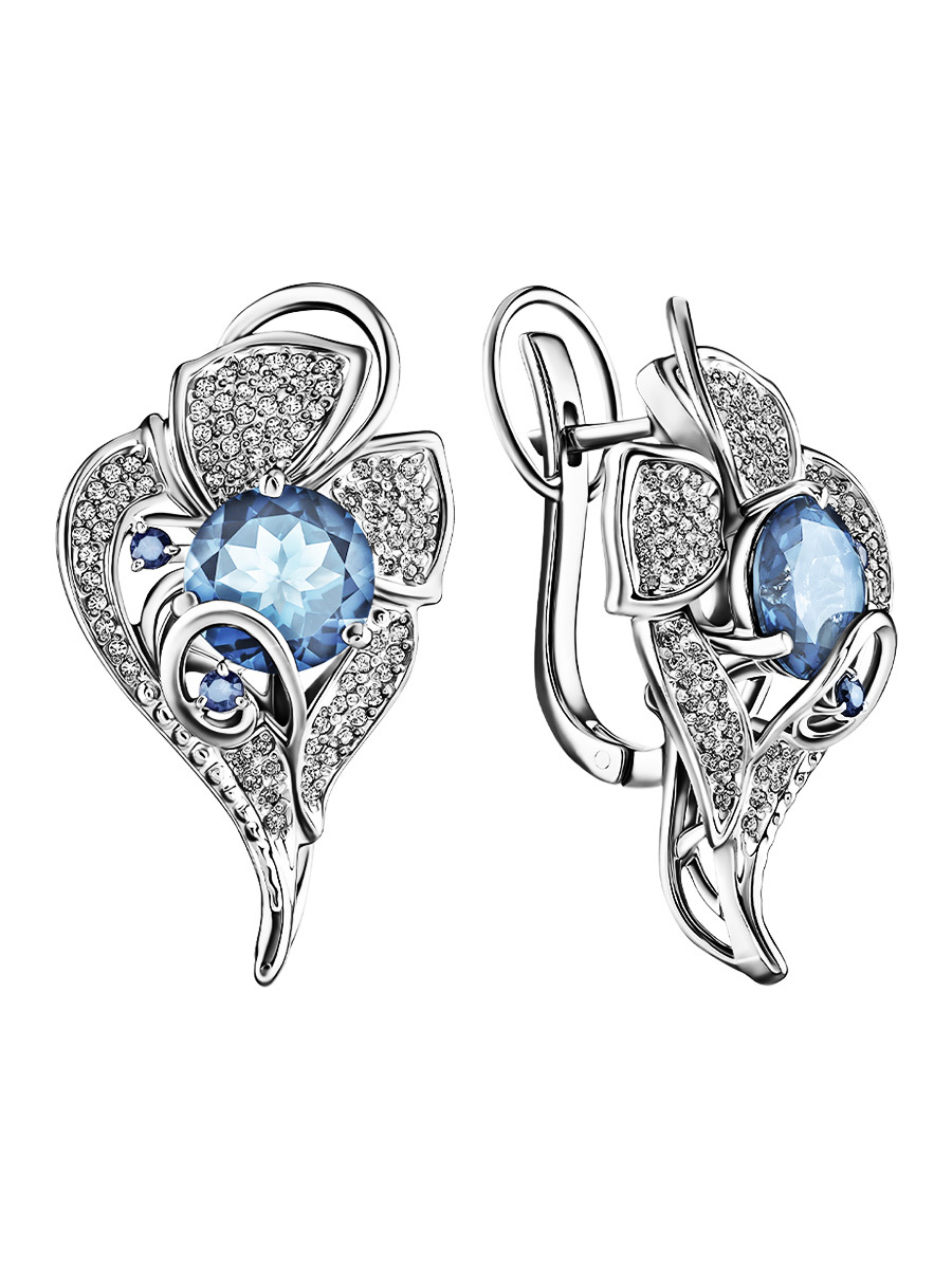 Ди АРС Серьги Дикая природа из серебра с топазом лондон синтетическим и фианитами