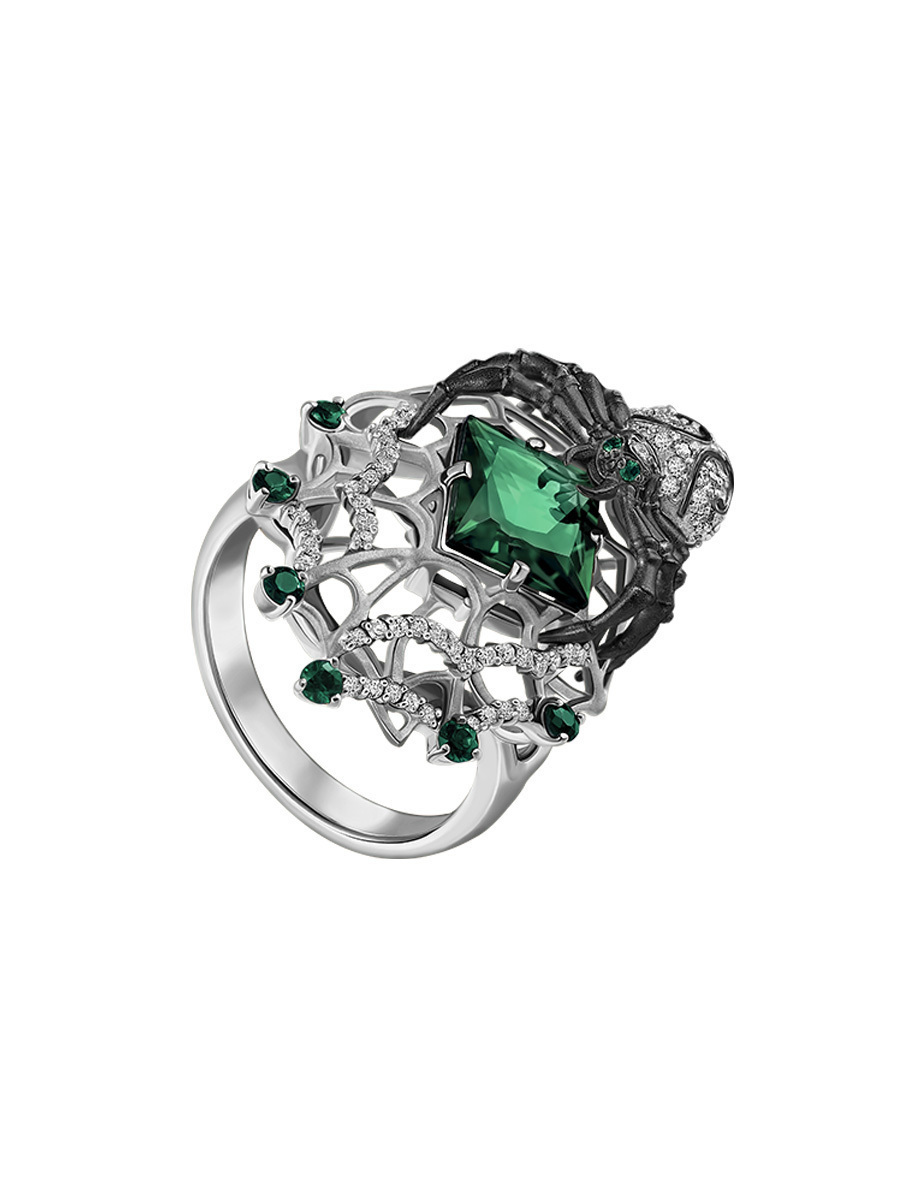 Ди АРС Кольцо Паутина тайны из серебра с изумрудом синтетическим и фианитами