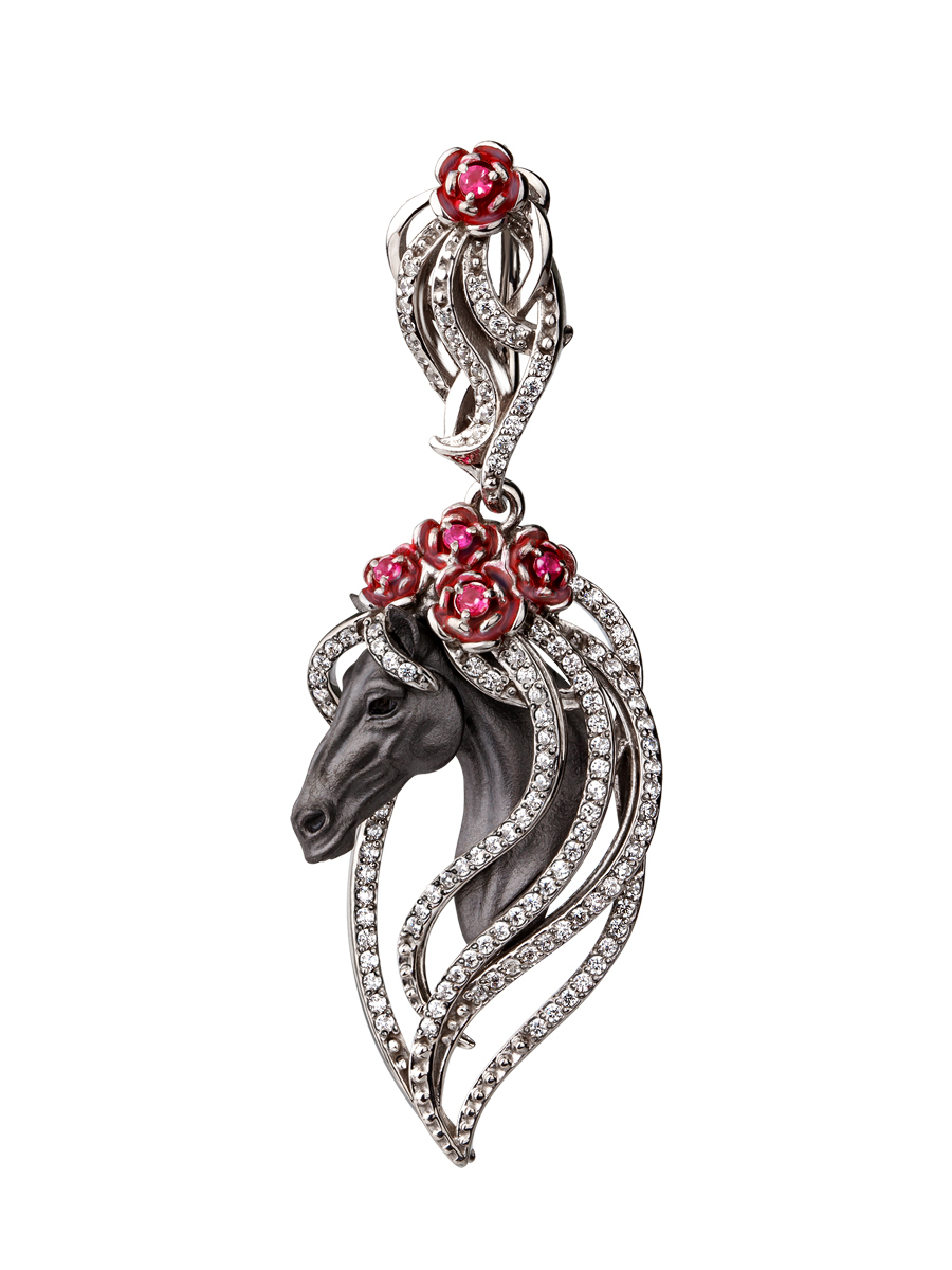 Ди АРС Подвеска Дуэт из серебра с фианитами, рубином синтетическим и эмалью