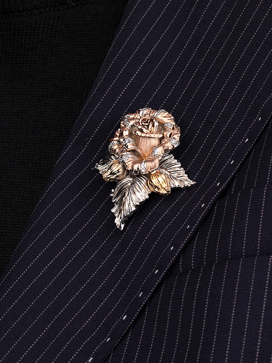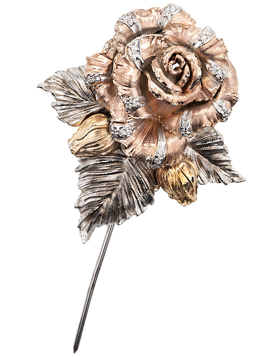 Ди АРС Брошь Роза из серебра с позолотой и фианитами
