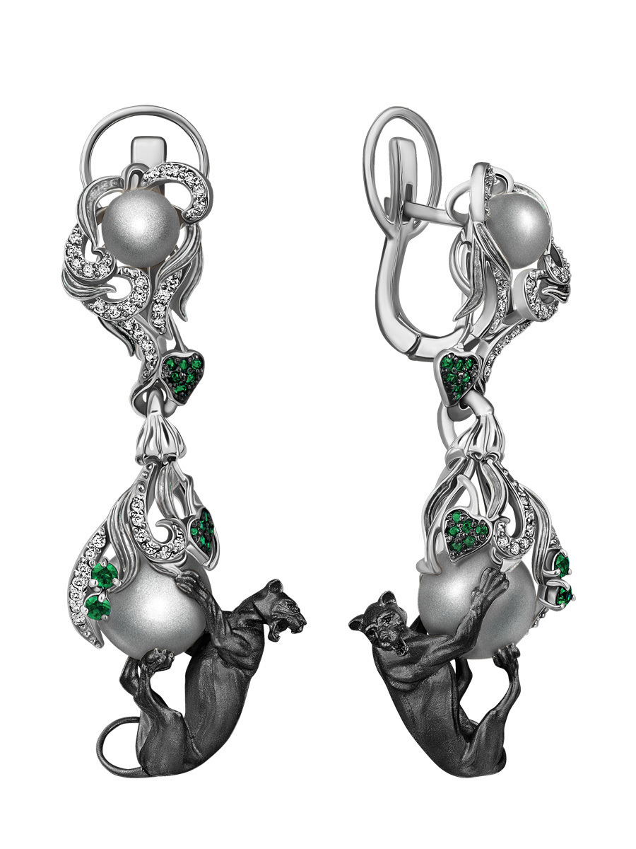 Ди АРС Серьги с пантерой Джунгли из серебра 925 пробы с фианитами