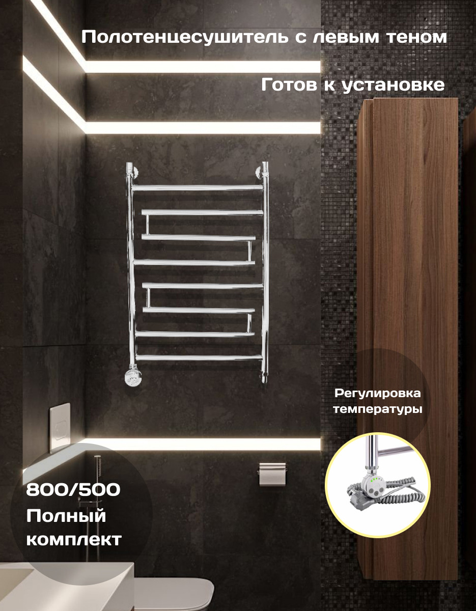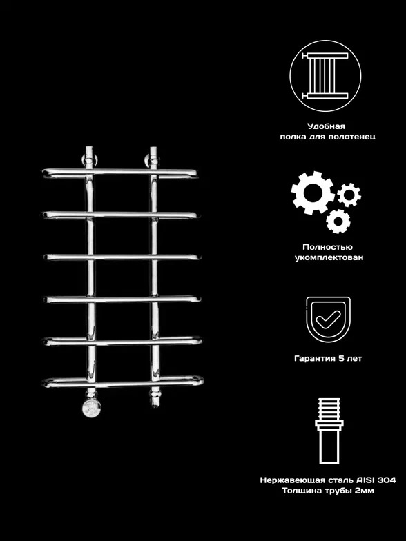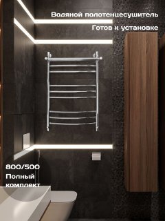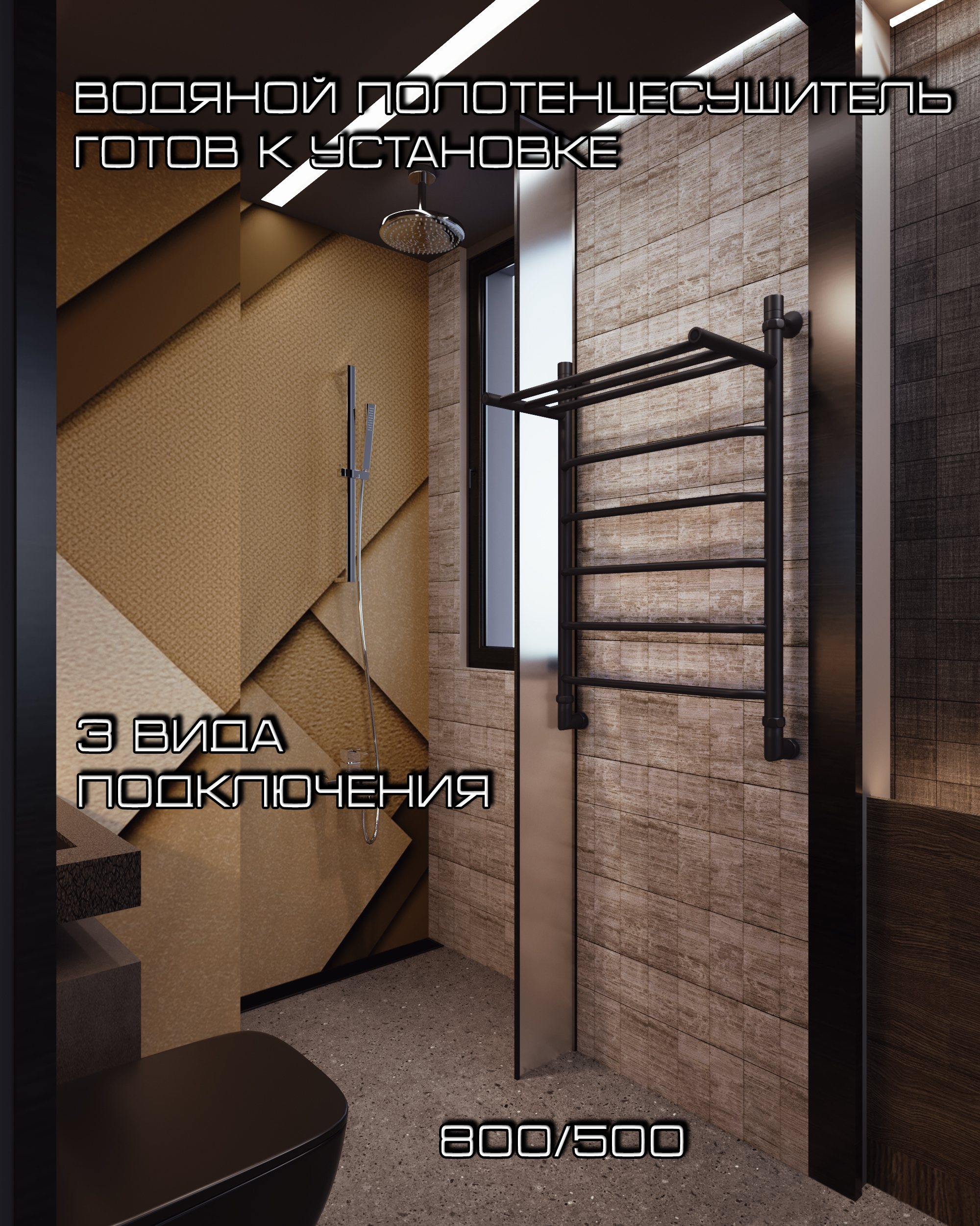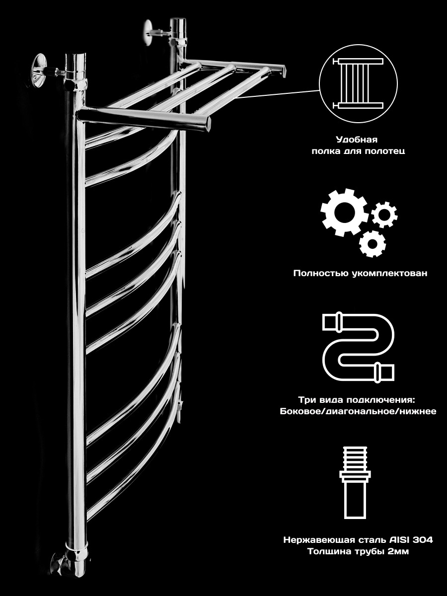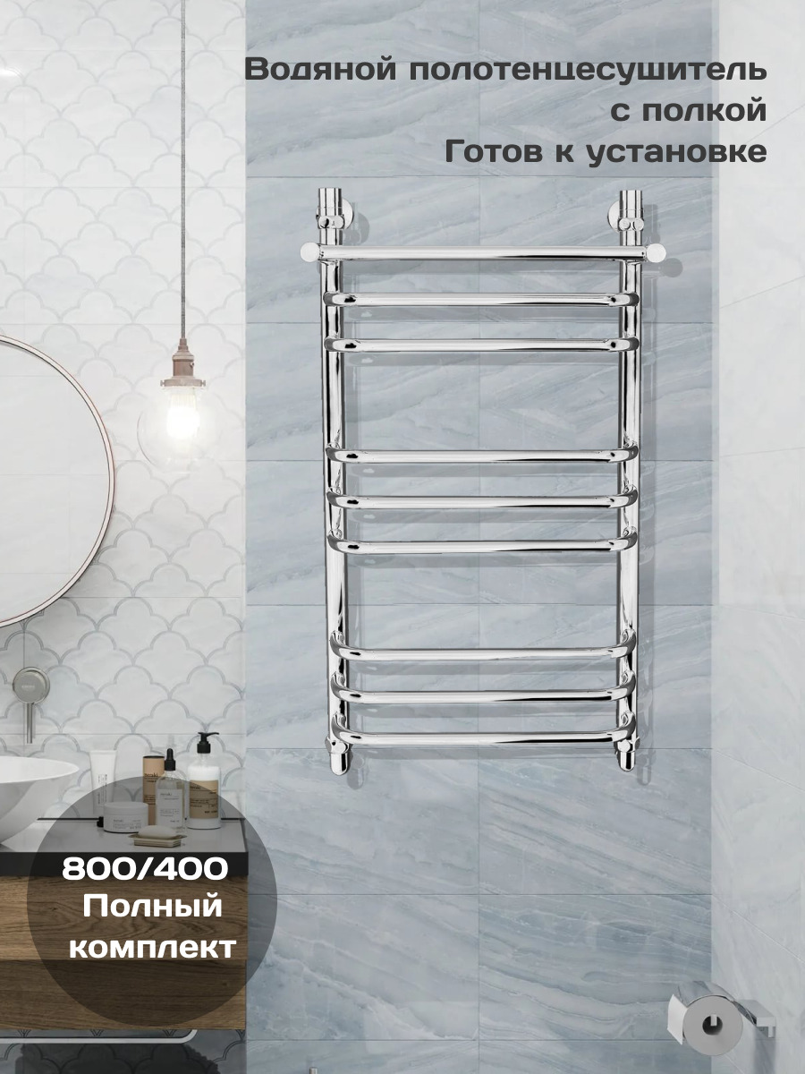 Полотенцесушитель водяной Di Kron 800 мм 500 мм форма лесенка трапеция с полкой