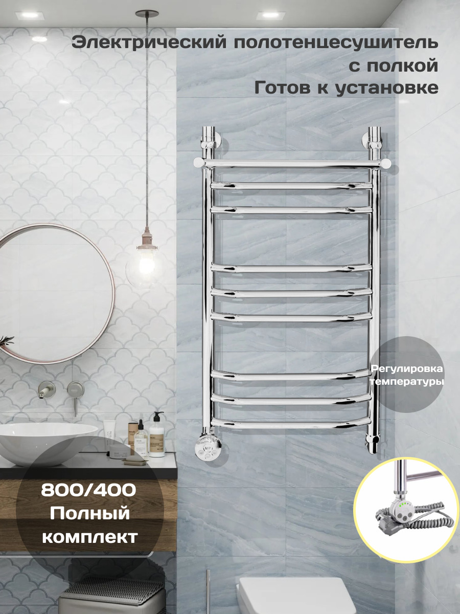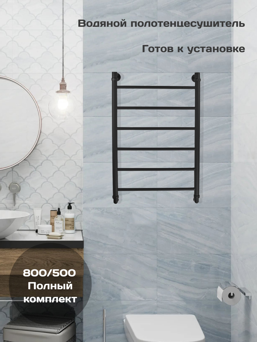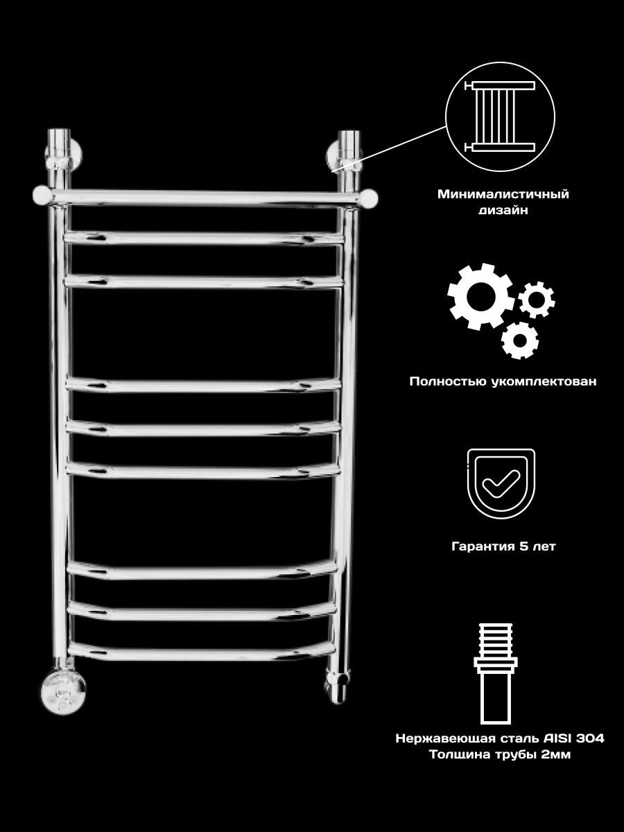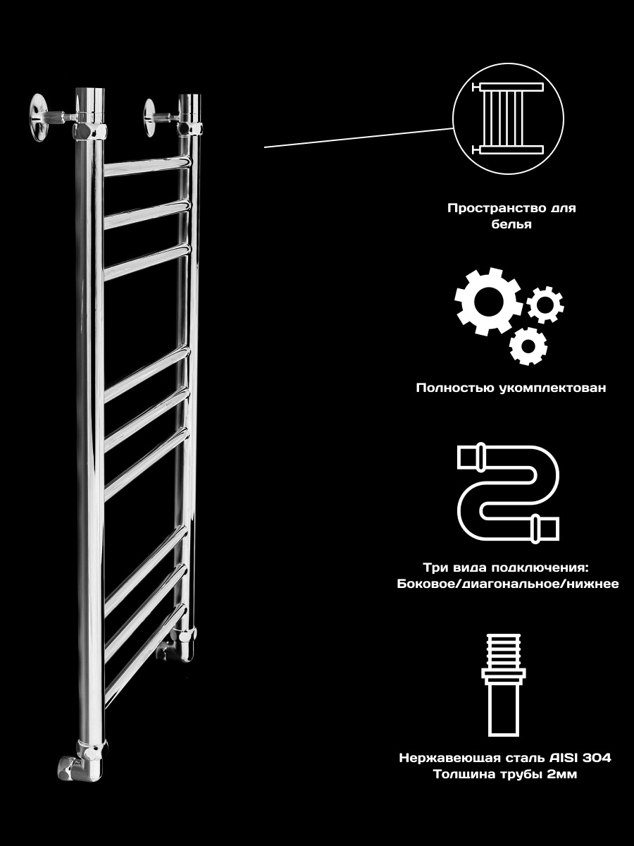 Полотенцесушитель водяной Di Kron 800 мм 500 мм форма лесенка трапеция с полкой