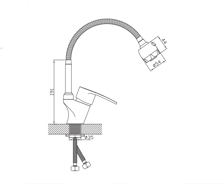 Diadonna Смеситель для кухни (мойки) латунный с гибким металлическим изливом, хромированный