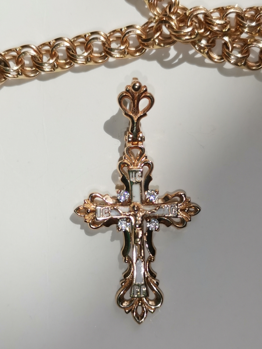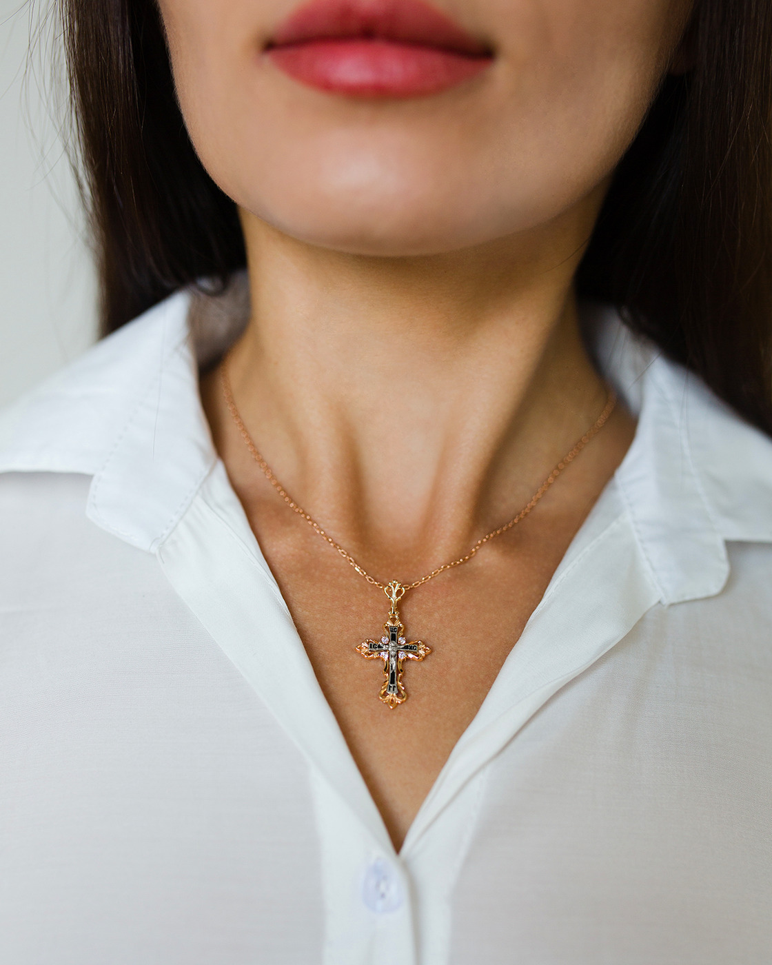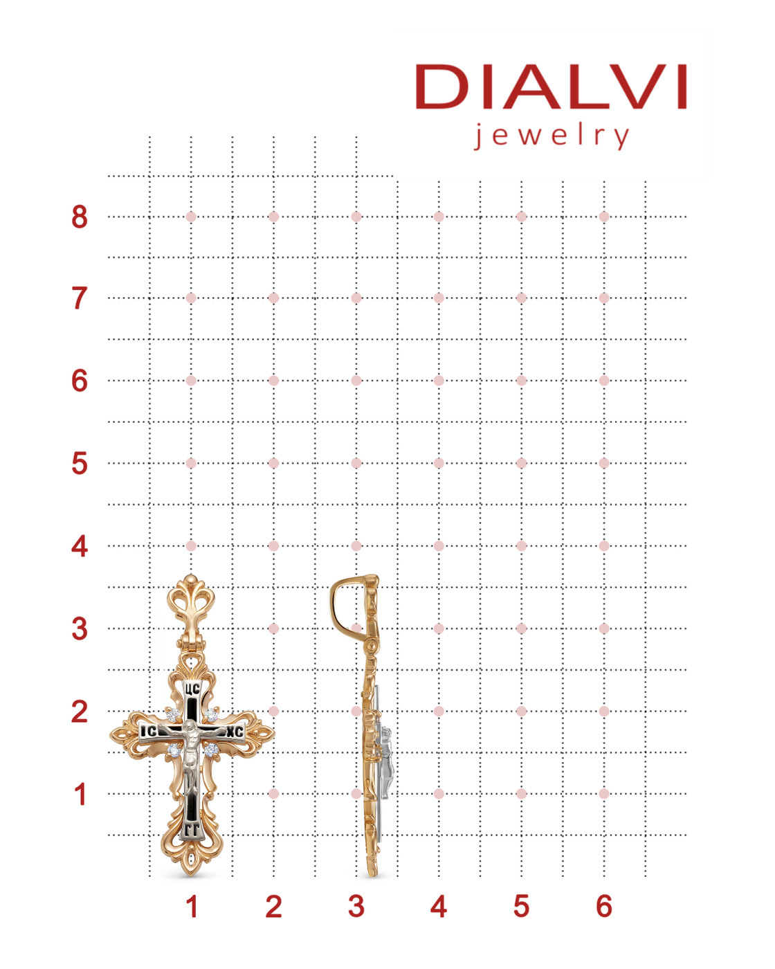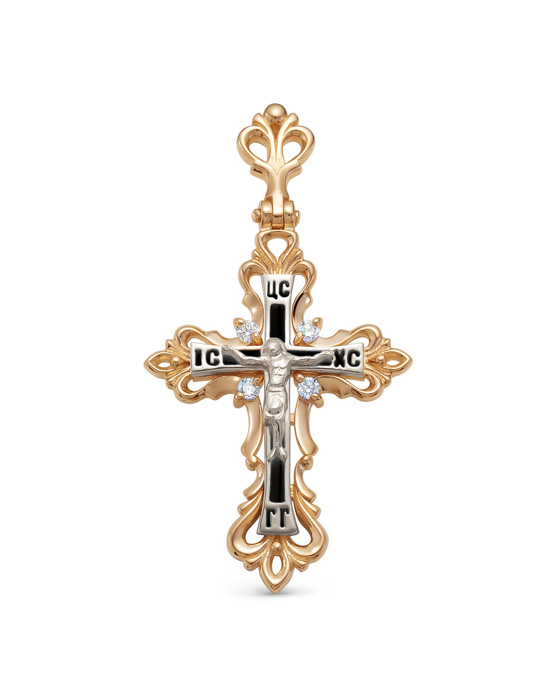 DIALVI JEWELRY Крестик "Традиция", золото 585 пробы, черная эмаль, фианиты, родий