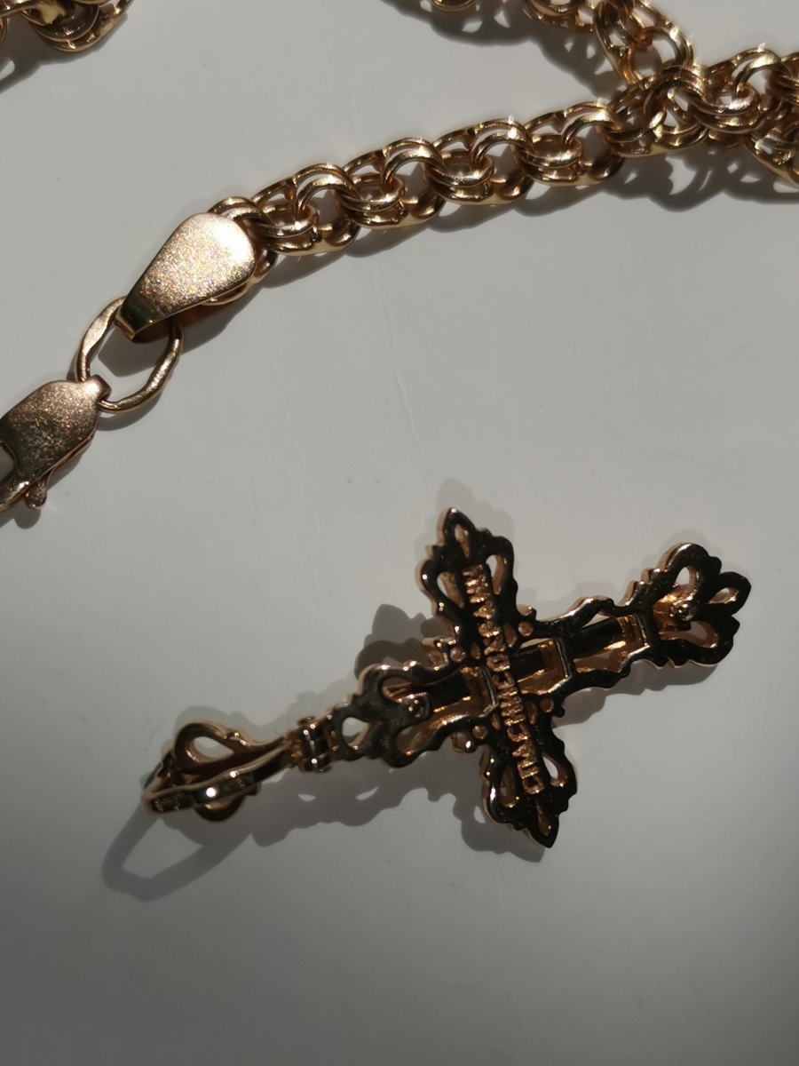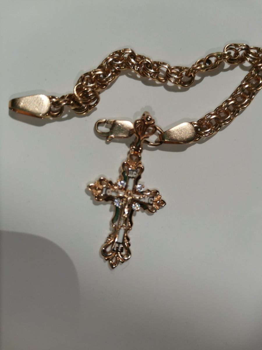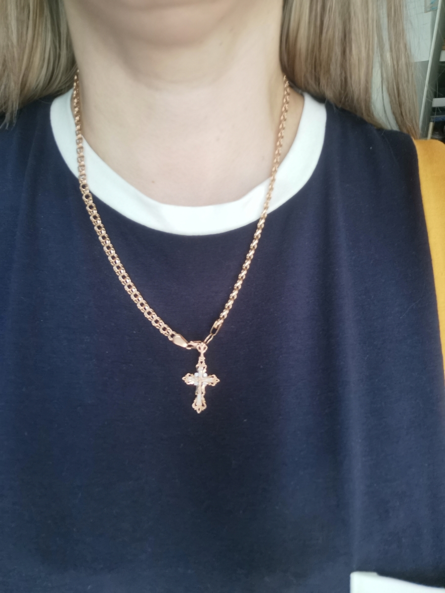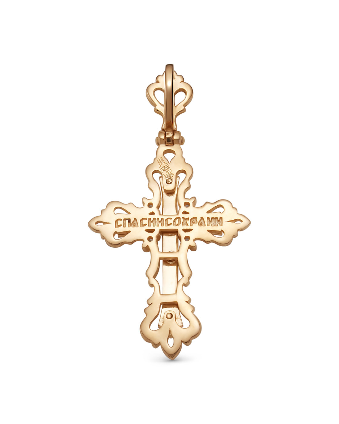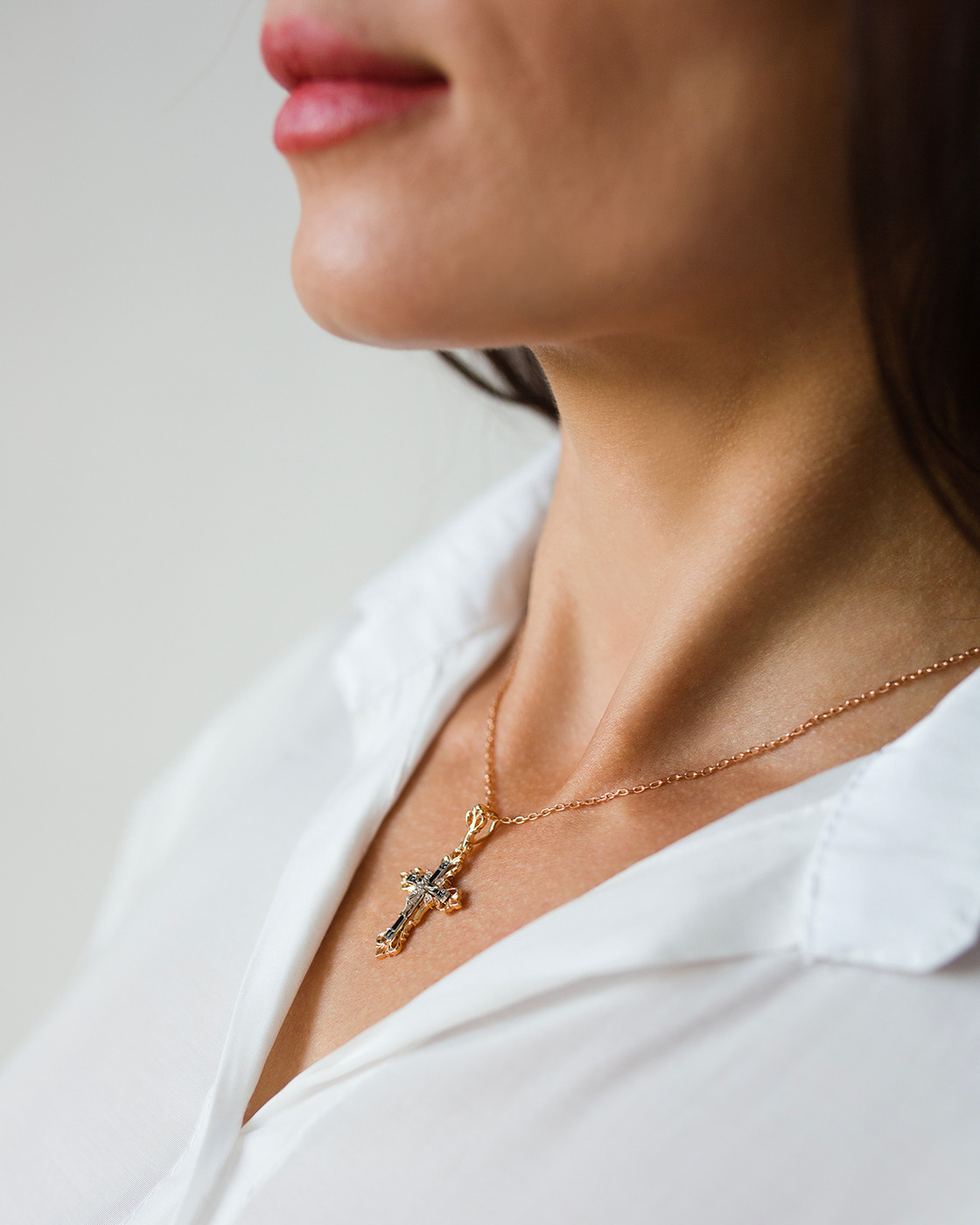 DIALVI JEWELRY Крестик "Традиция", золото 585 пробы, черная эмаль, фианиты, родий