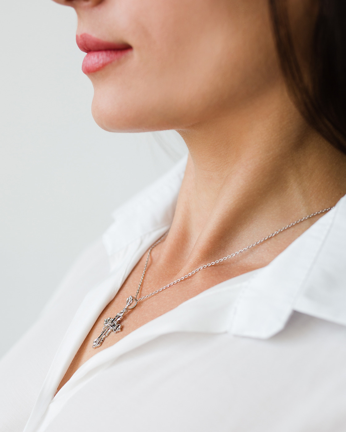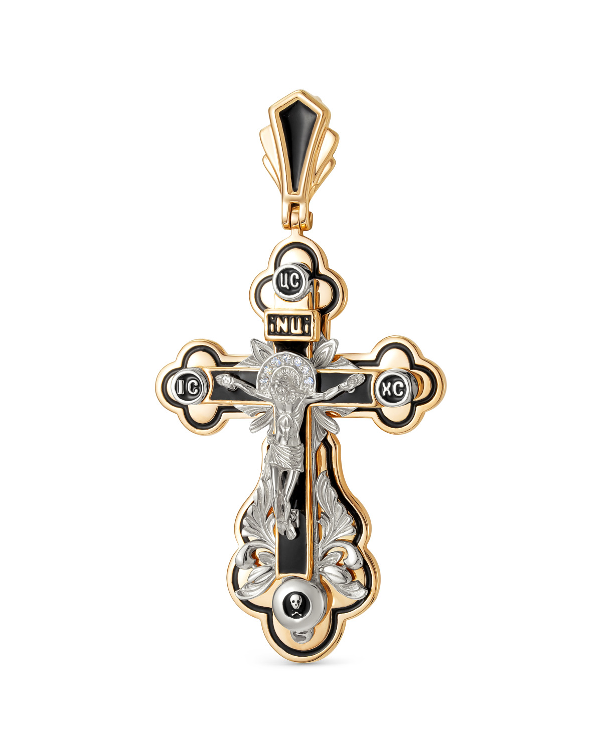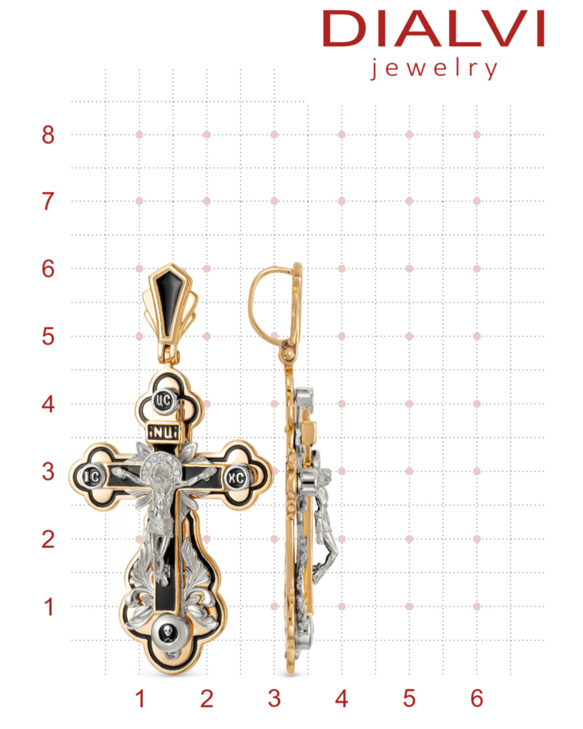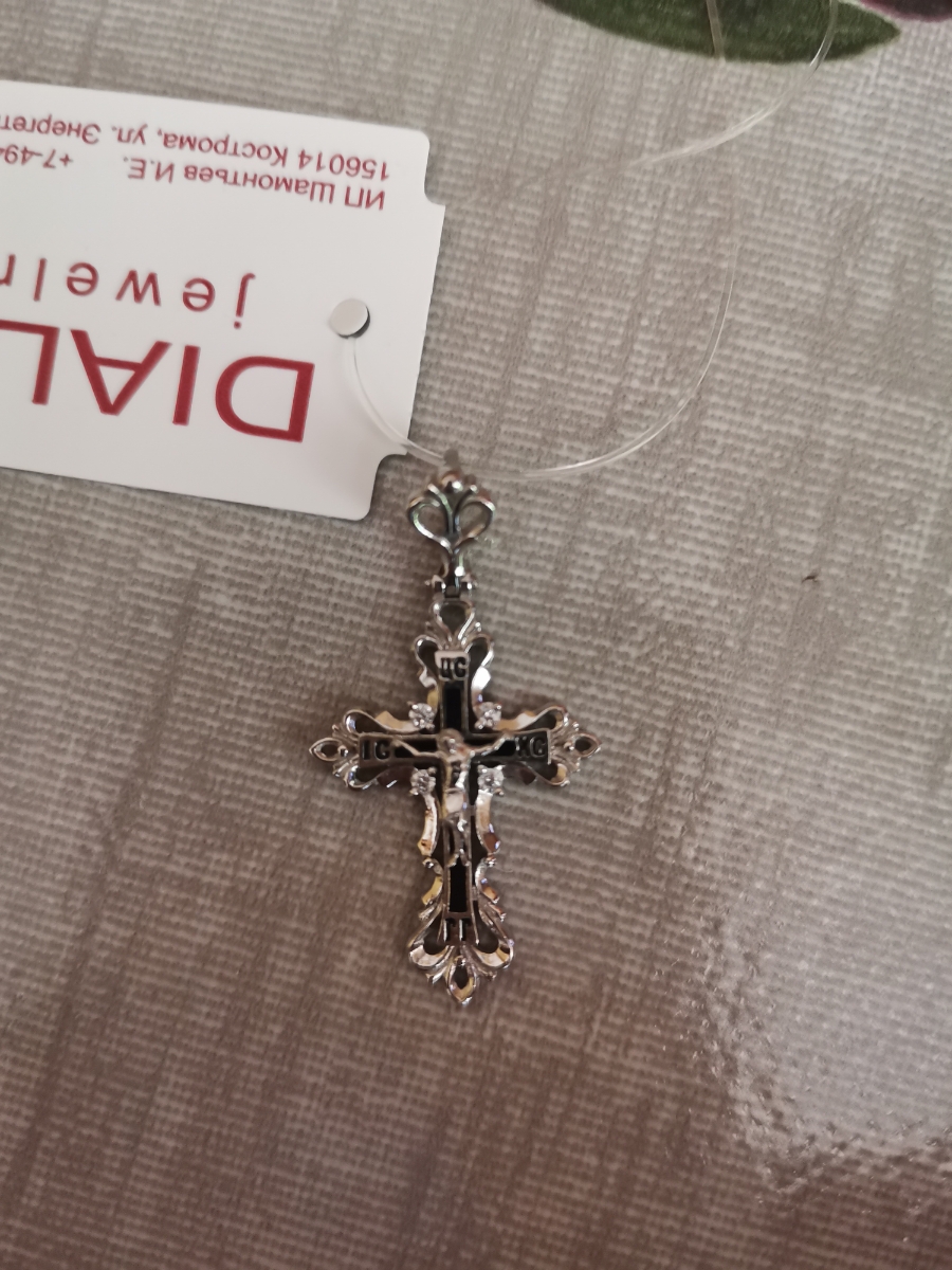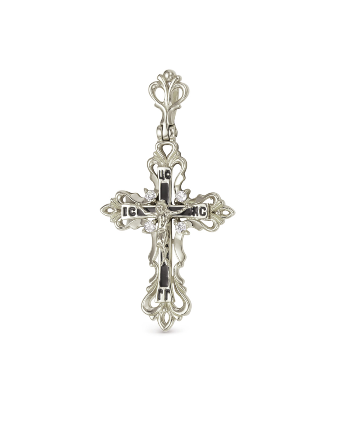 DIALVI JEWELRY Крестик "Традиция", серебро 925 пробы, черная эмаль, покрытие родий