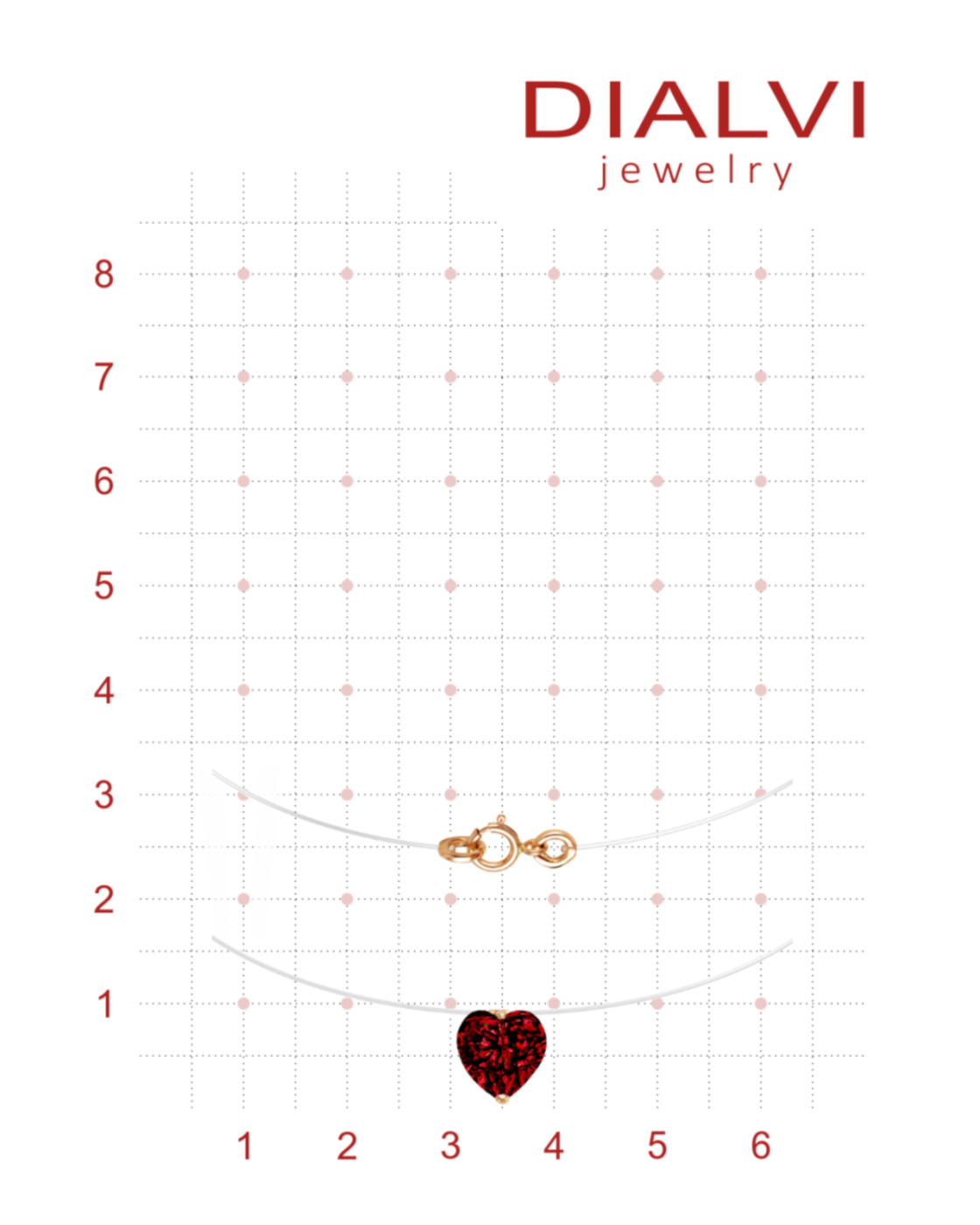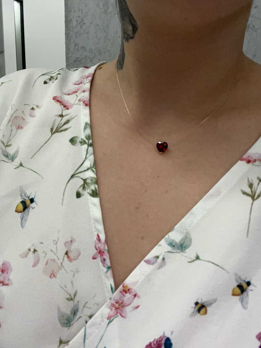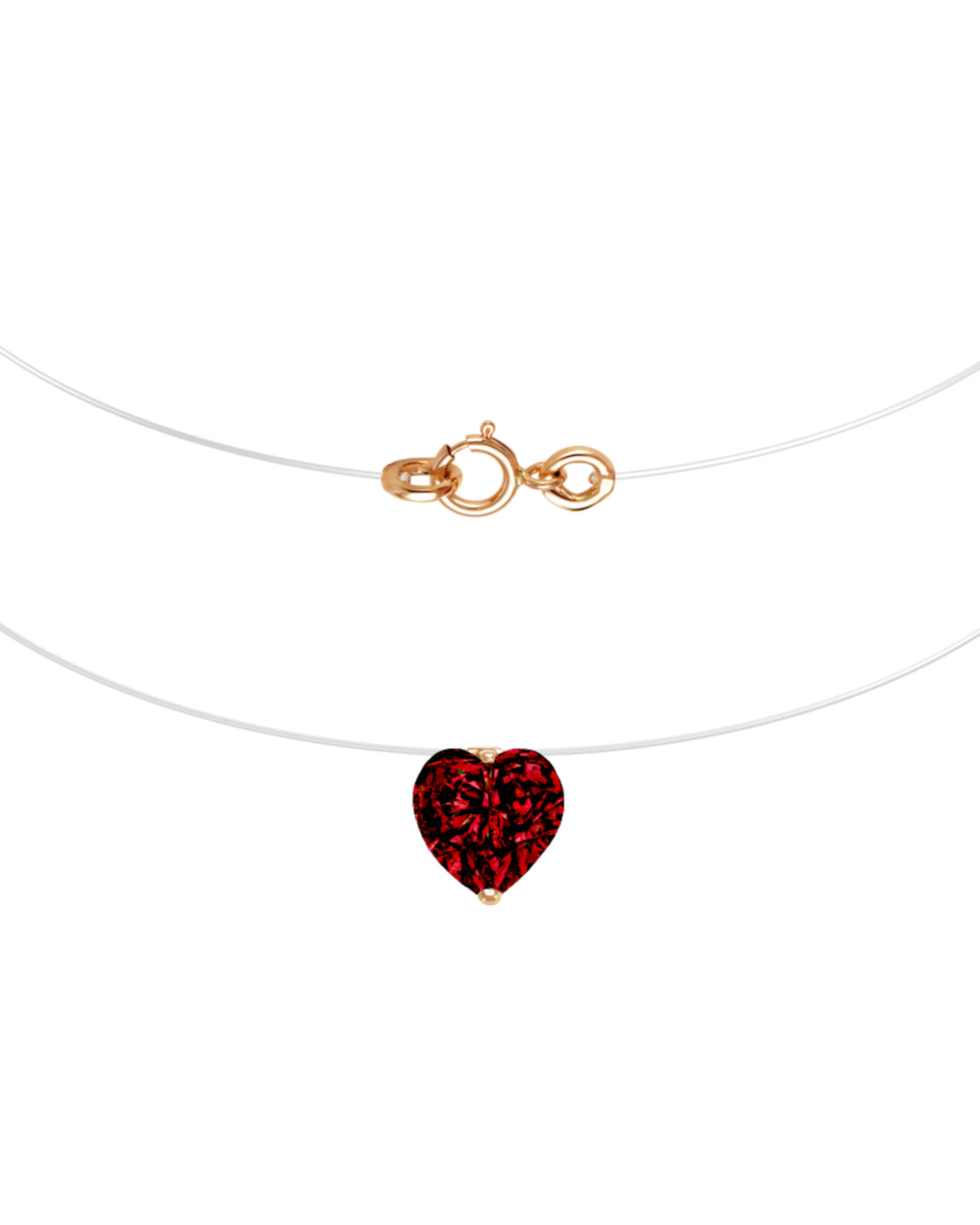 DIALVI JEWELRY Колье на леске, с фианитом 8 мм огранки "Сердце" цвет гранат, золото 585 пробы