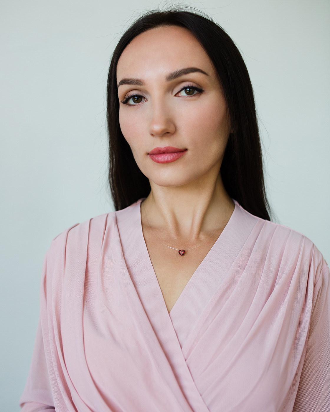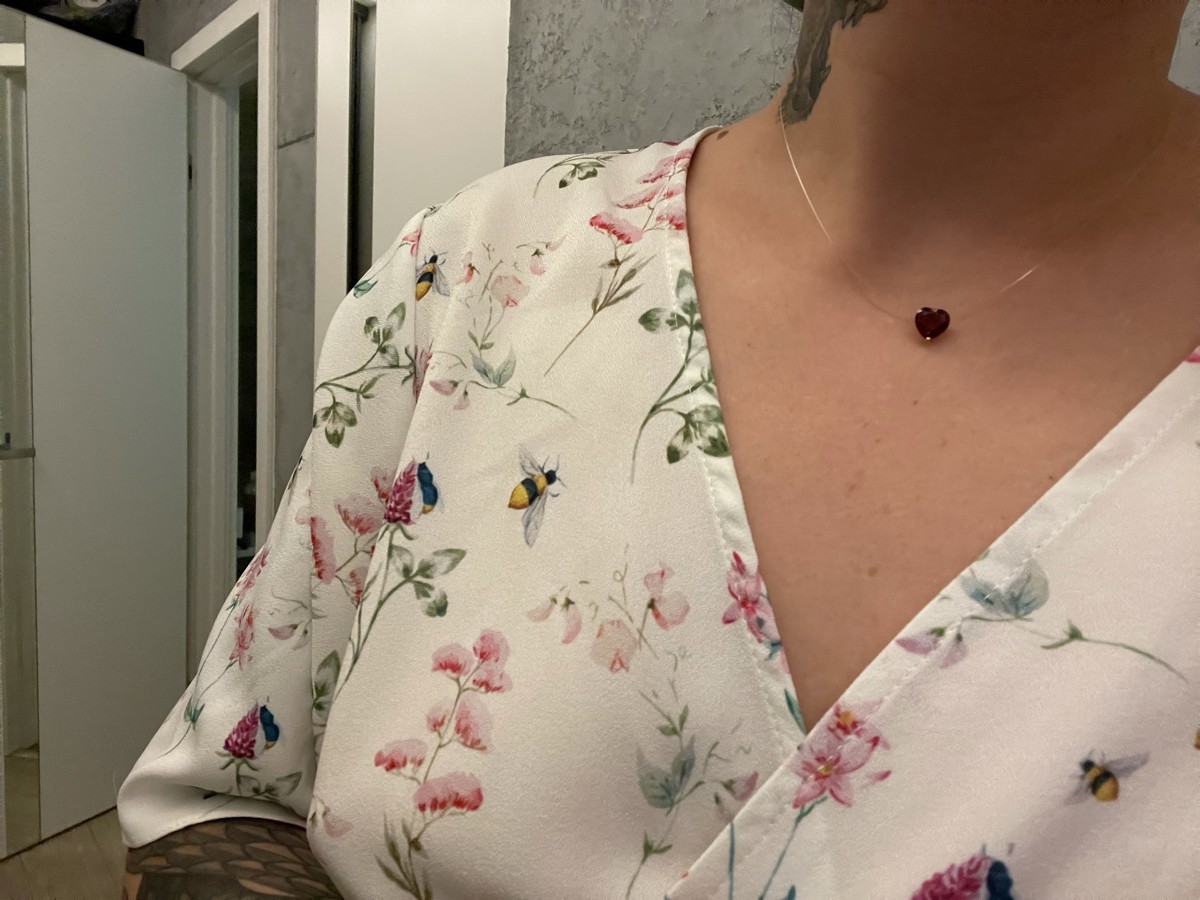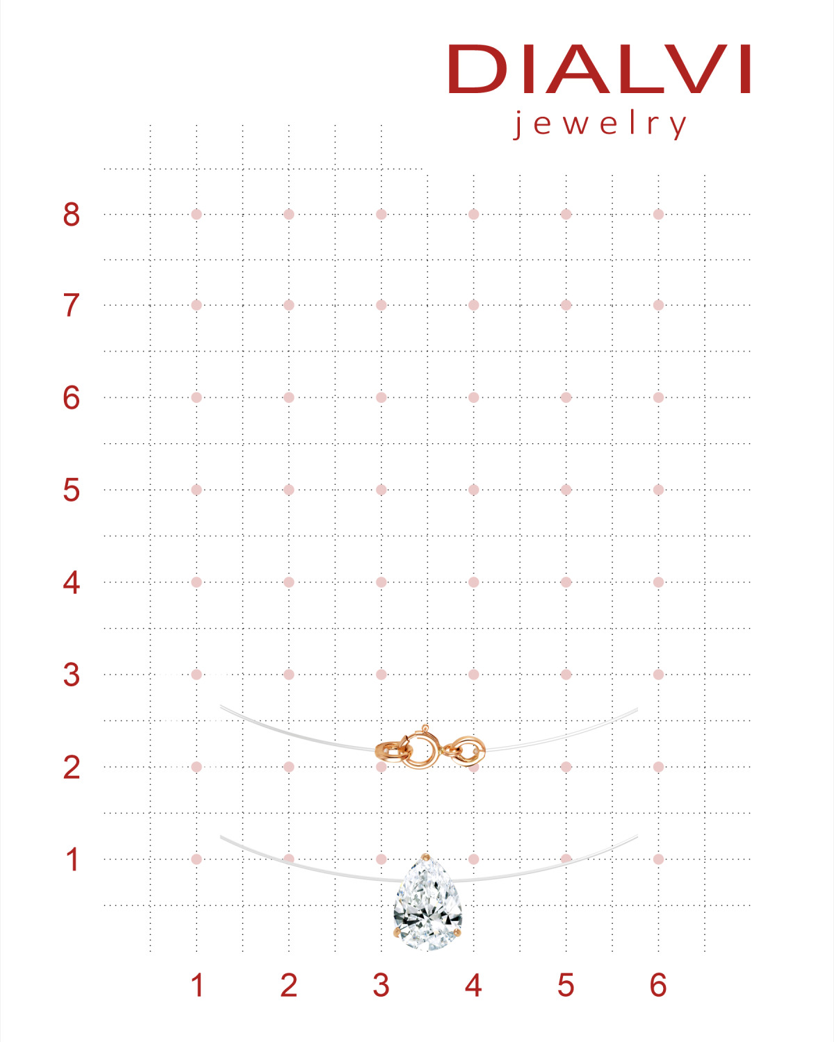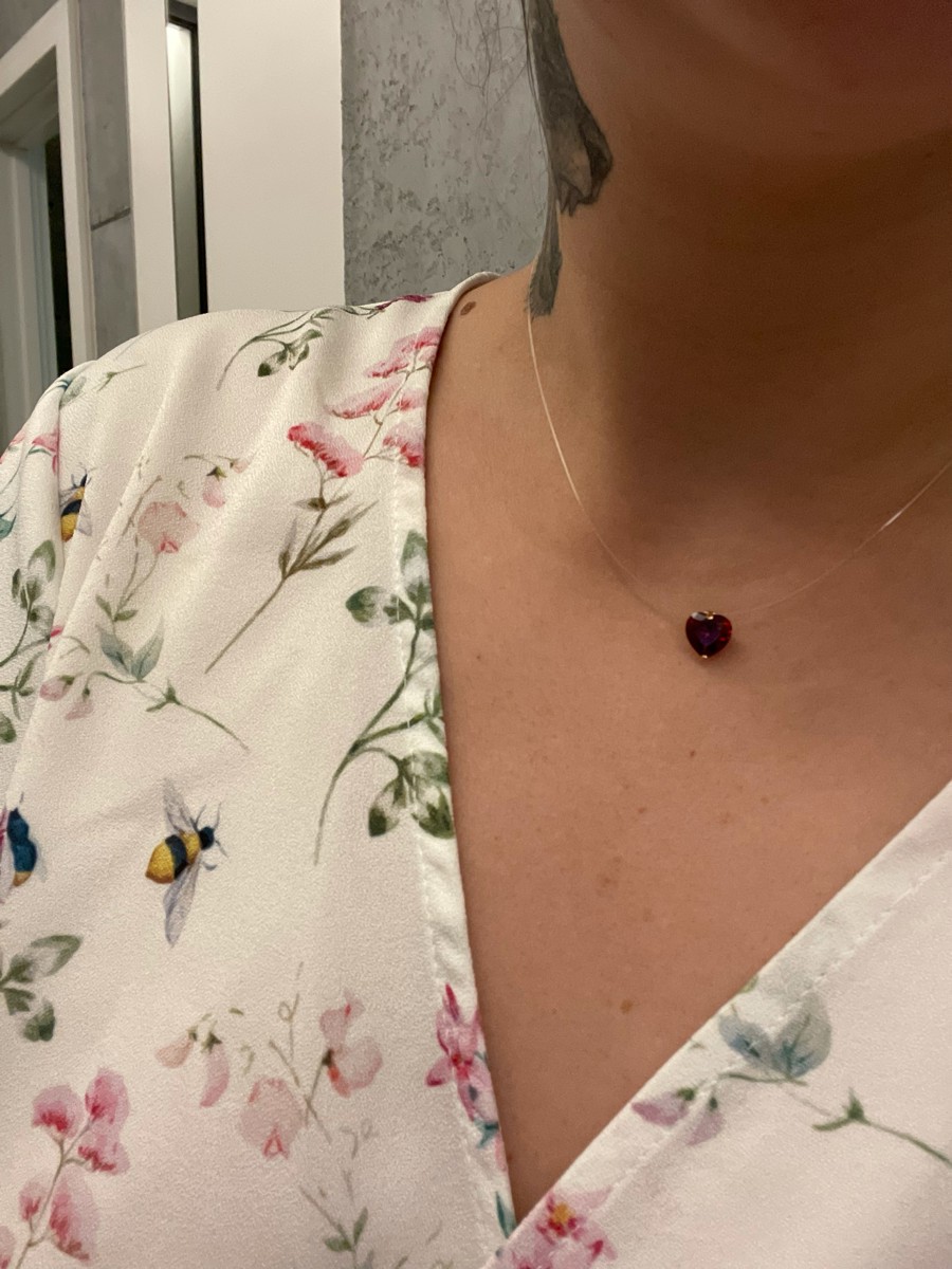 DIALVI JEWELRY Колье на леске, с фианитом 8 мм огранки "Сердце" цвет гранат, золото 585 пробы