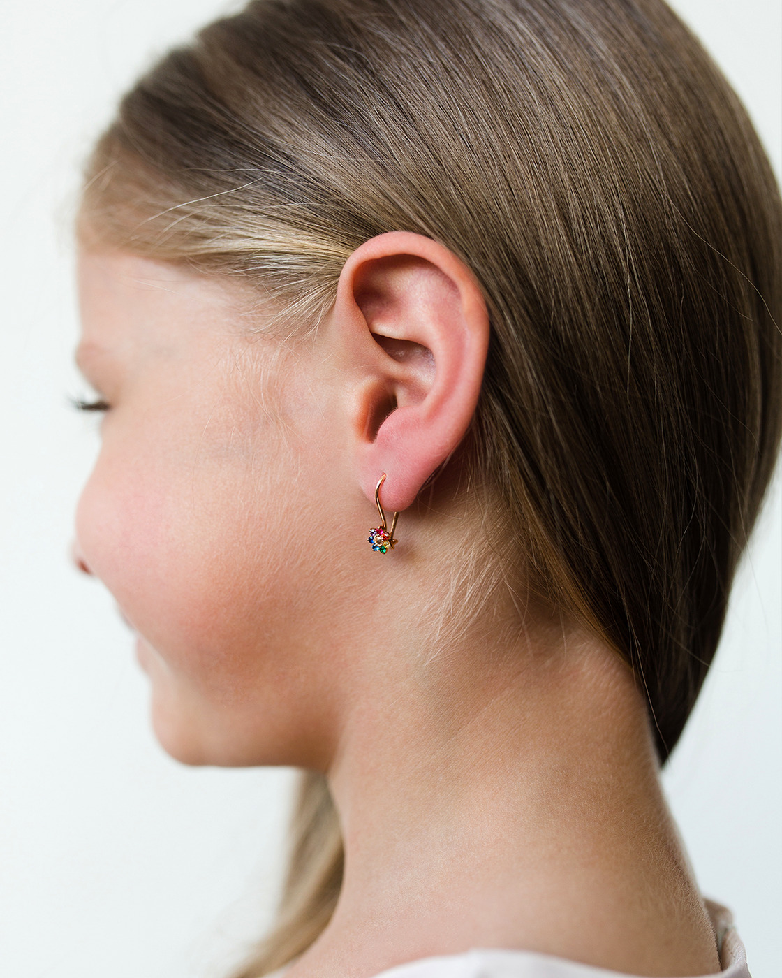 DIALVI JEWELRY Серьги детские "Семицветики" с французским замком, золото 585 пробы
