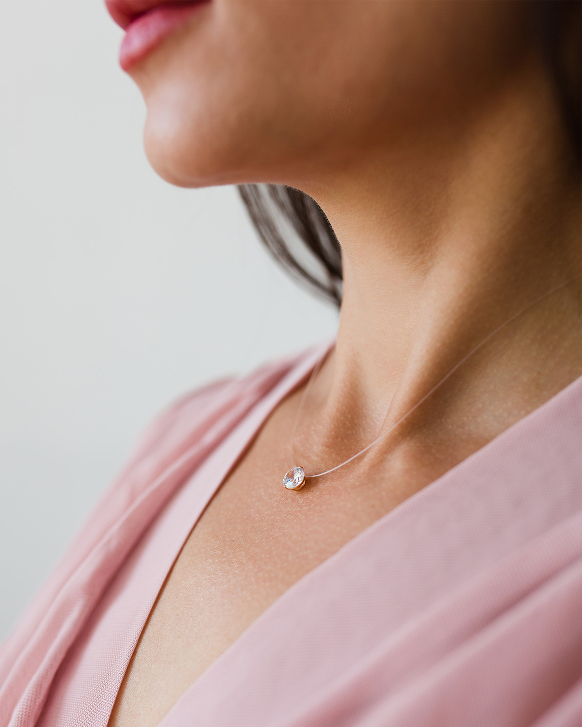 DIALVI JEWELRY Колье на леске, золото 585 пробы, фианит бриллиантовой огранки 7 мм