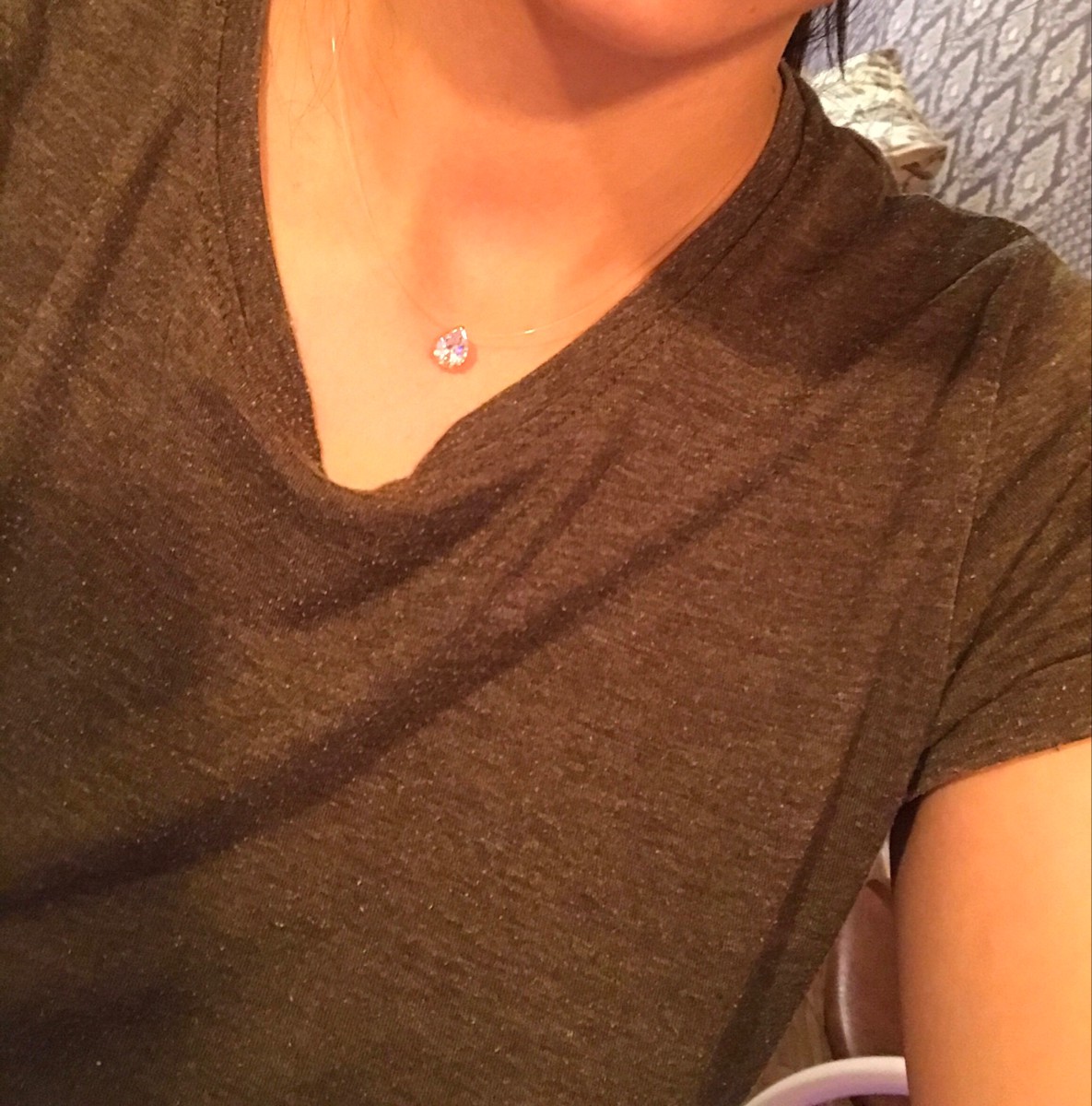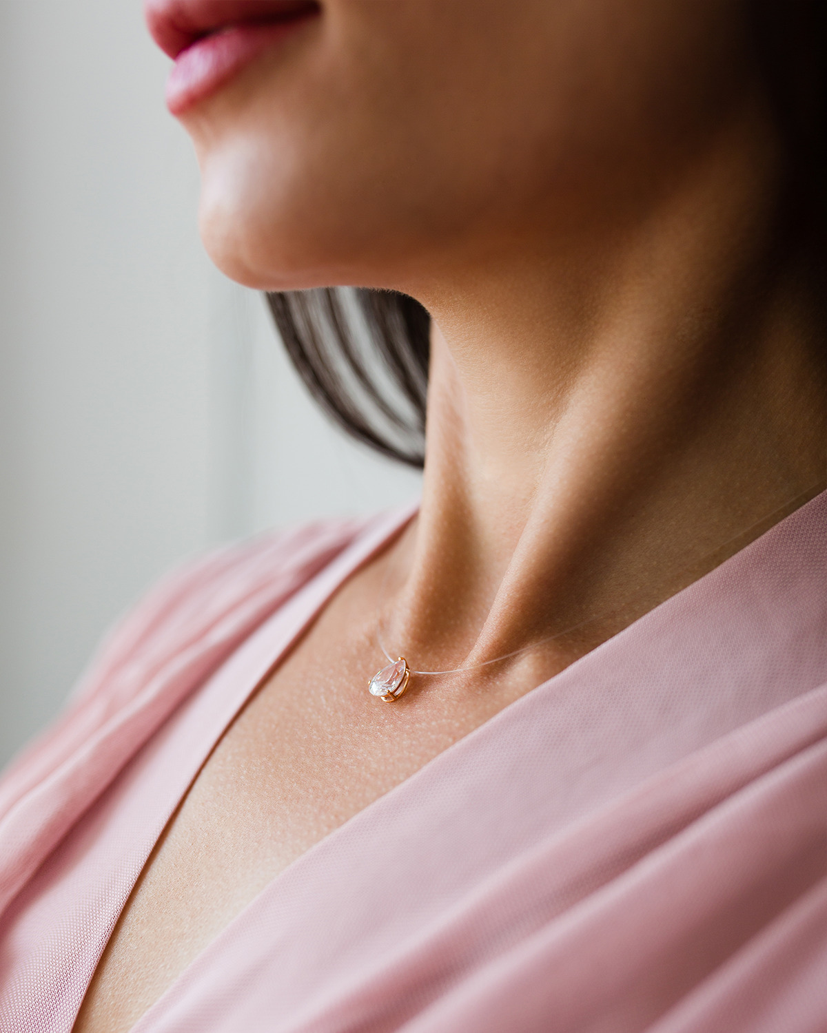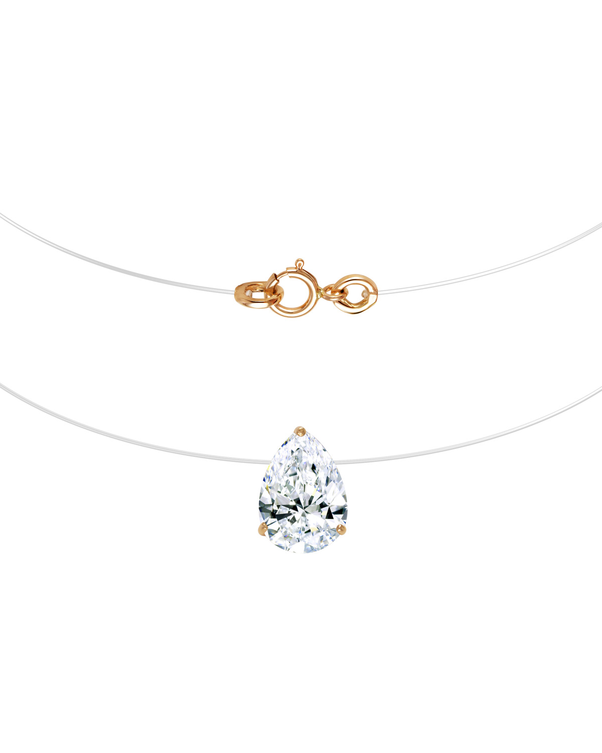 DIALVI JEWELRY Колье Колье-невидимка, подвеска "Капля", золото 585 пробы, фианит 7х10 мм