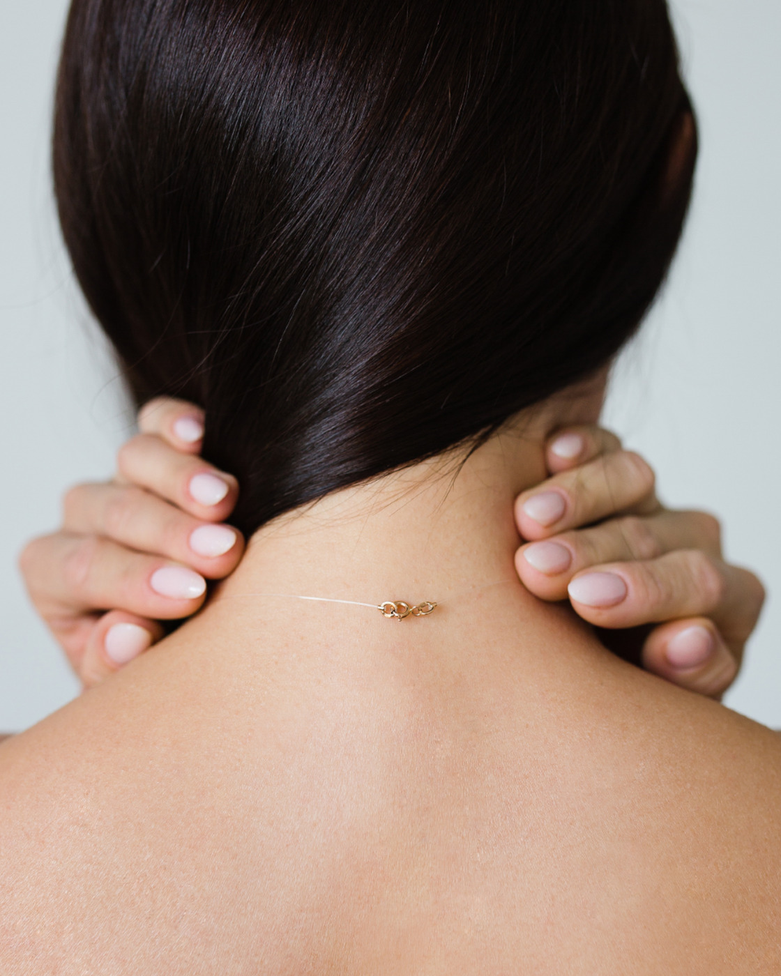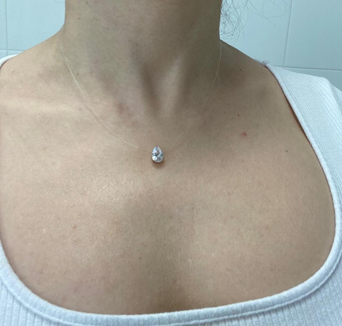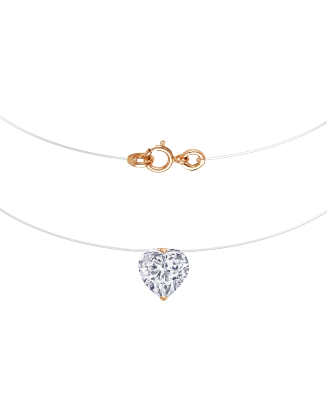 DIALVI JEWELRY Колье Колье-невидимка, подвеска "Капля", золото 585 пробы, фианит 7х10 мм