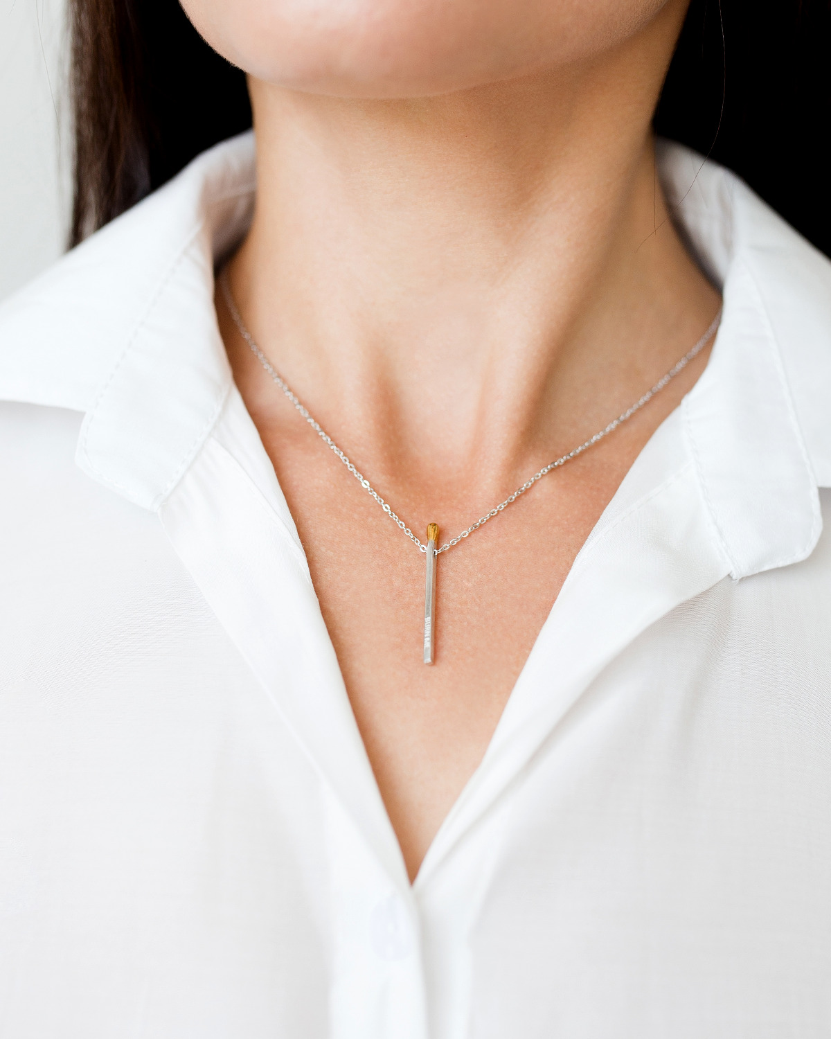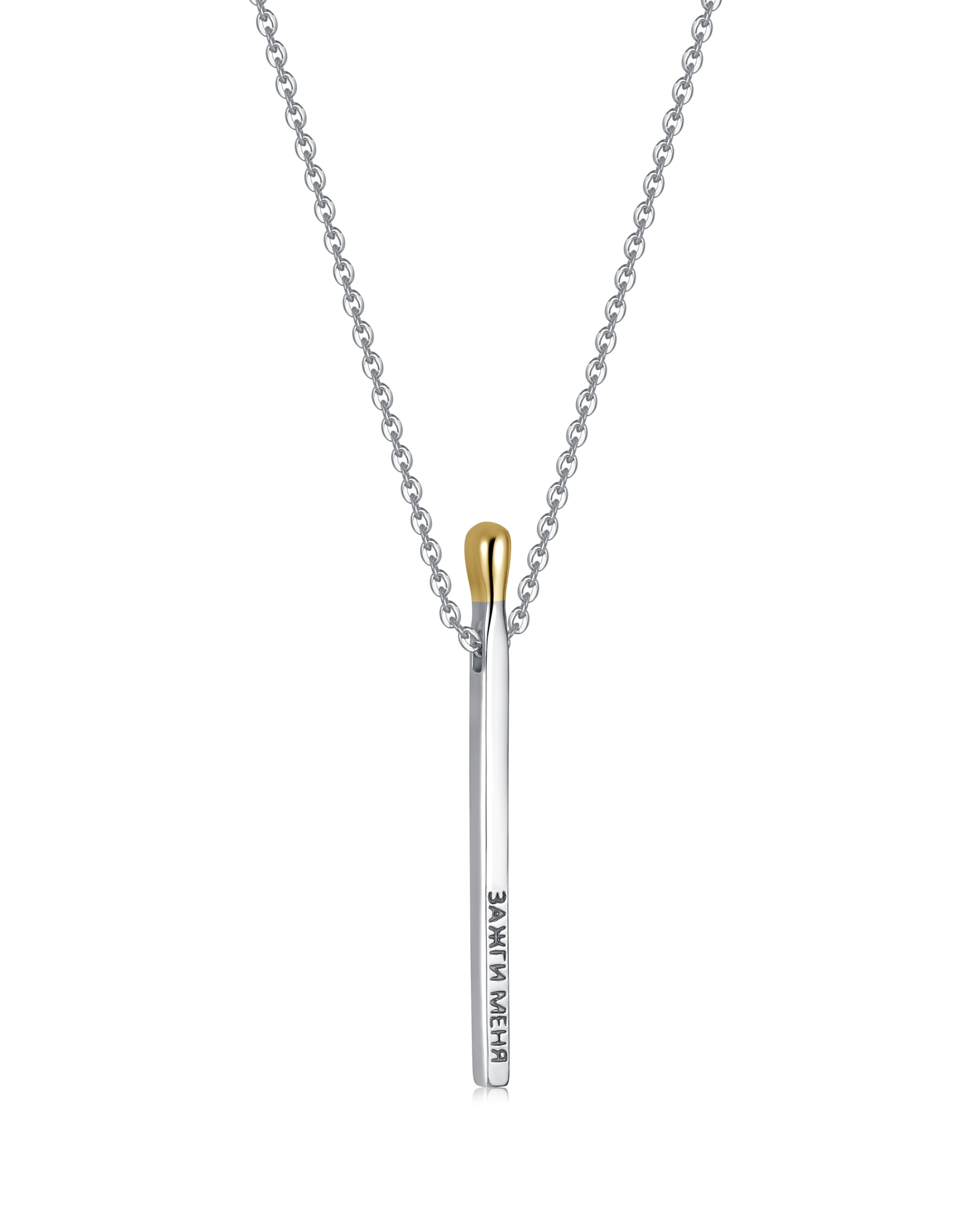 DIALVI JEWELRY Колье с подвеской "Спичка", серебро 925 пробы, покрытие родий и золото