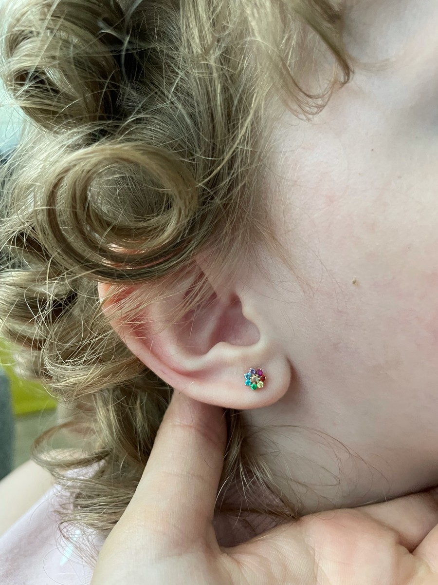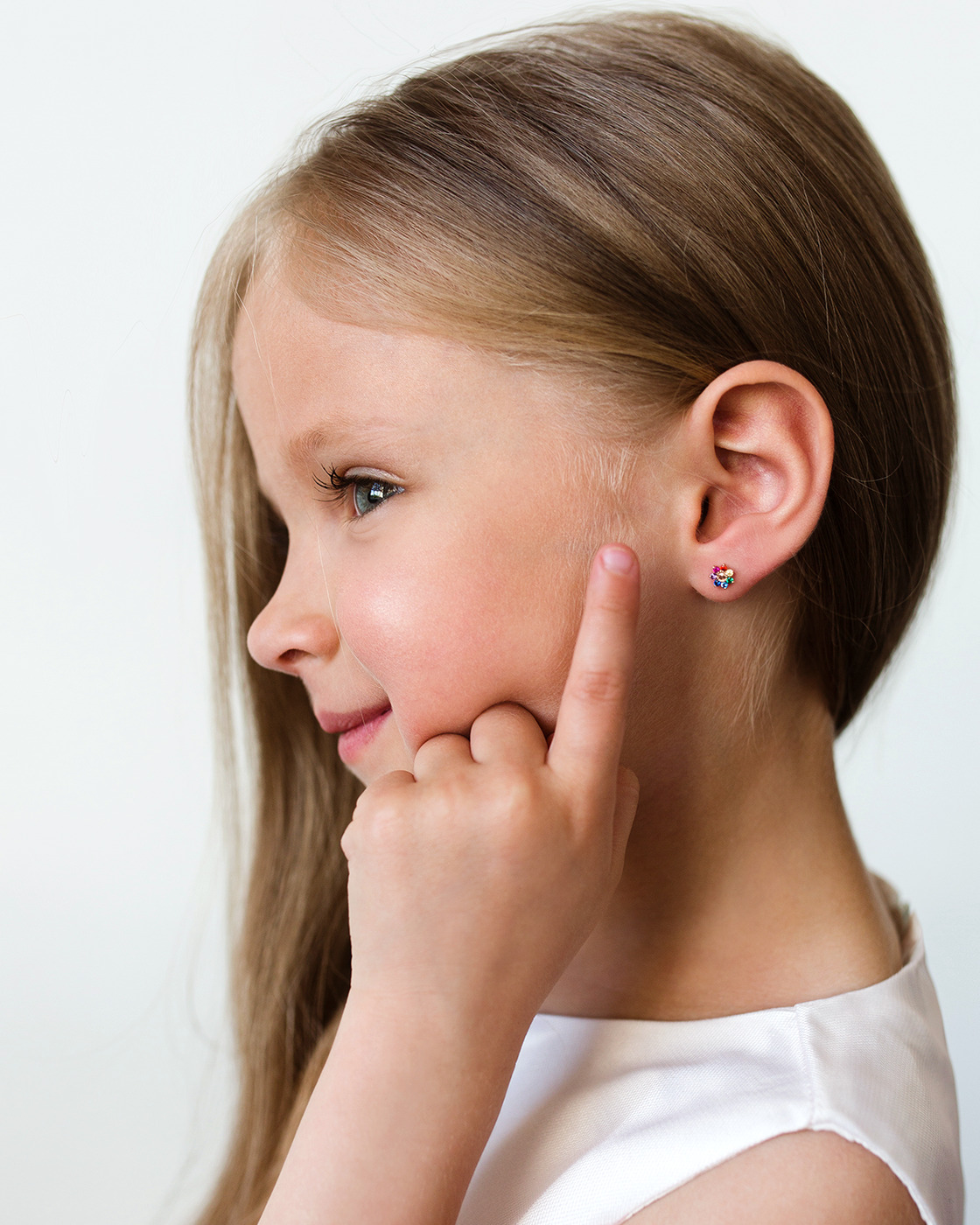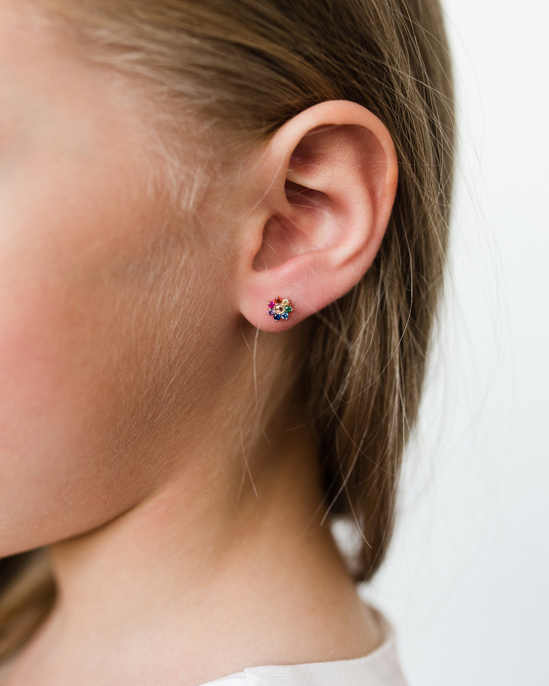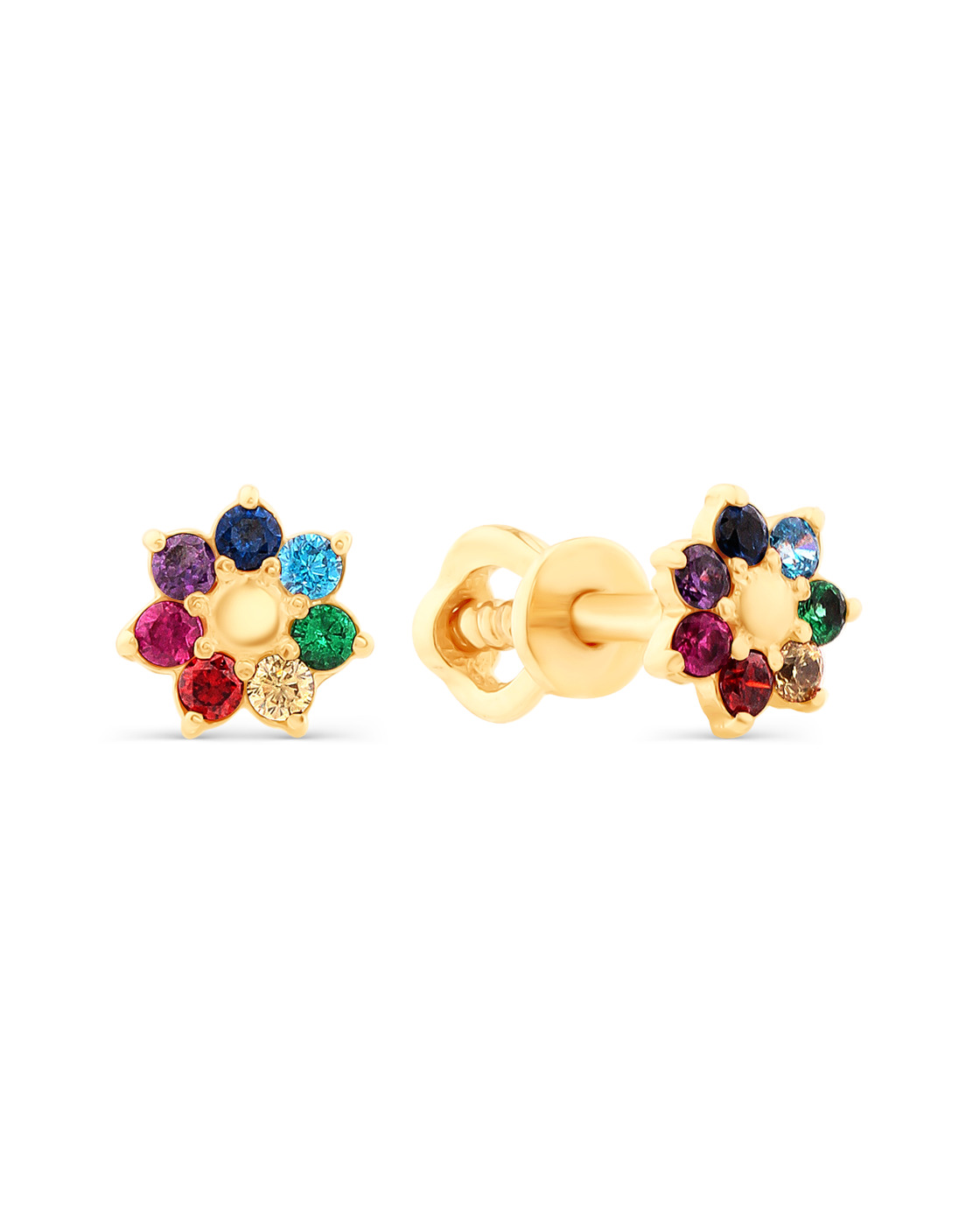 DIALVI JEWELRY Серьги детские "Семицветик", пусеты, золото 585 пробы, цветные фианиты