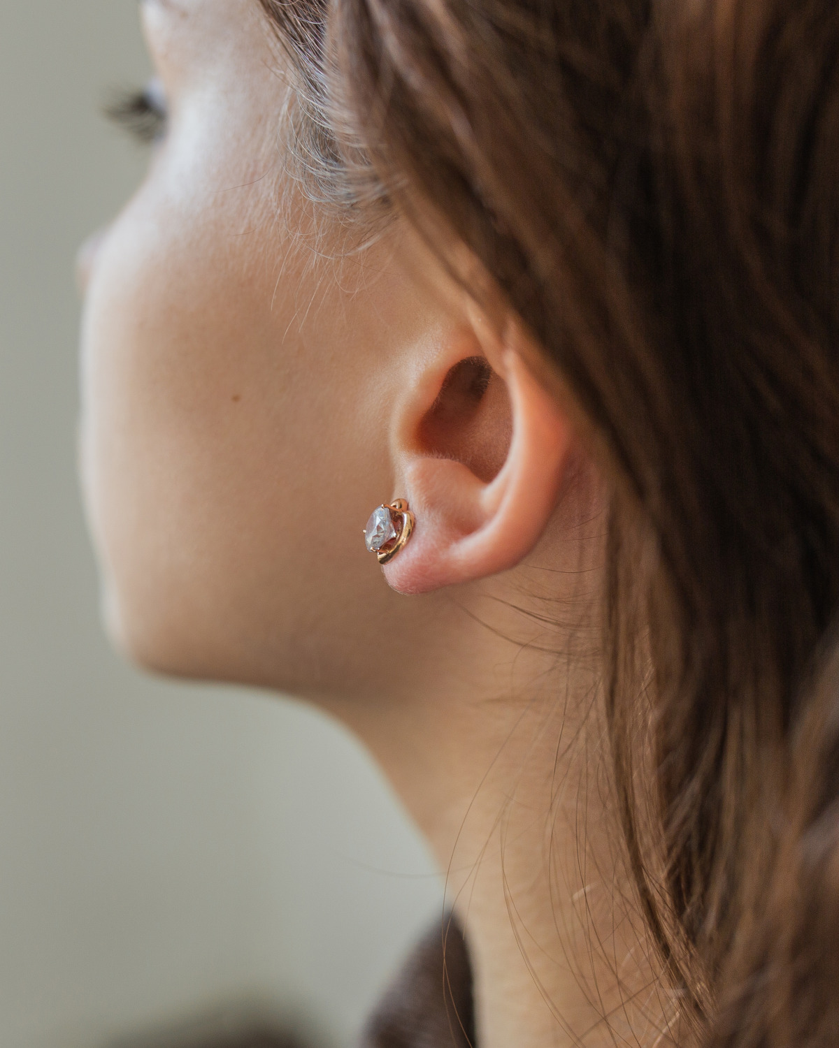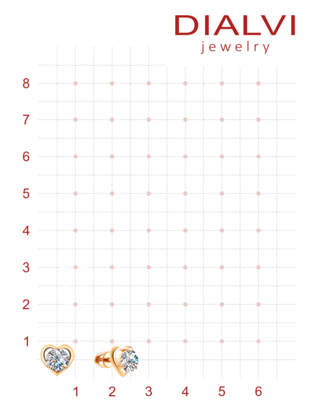 DIALVI JEWELRY Серьги Пусеты "Сердечки" с круглым фианитом 6 мм