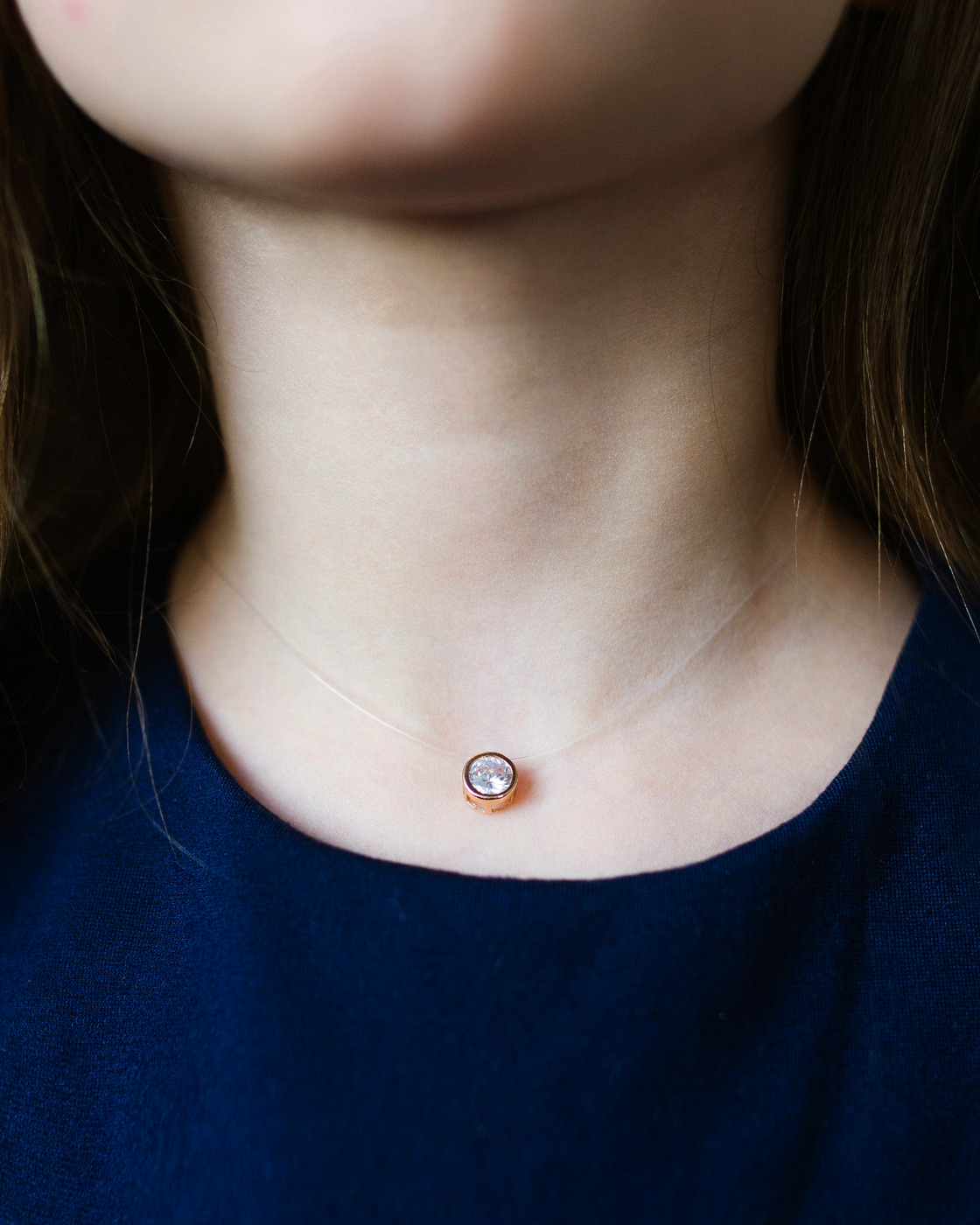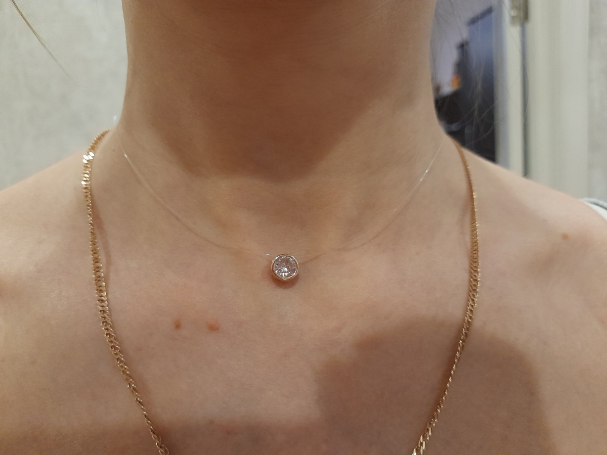 DIALVI JEWELRY Колье на леске, фианит круг в золотом обрамлении 6 мм, золото 585 пробы
