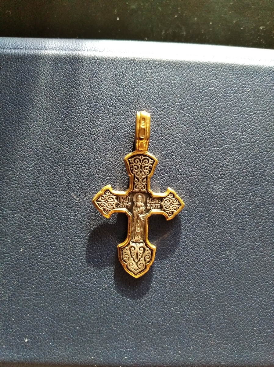 Диамида Крестик Православный Серебряный позолоченный 925 пробы, Детский / Женский, 5306-065, Св. преп. Сергий Радонежский