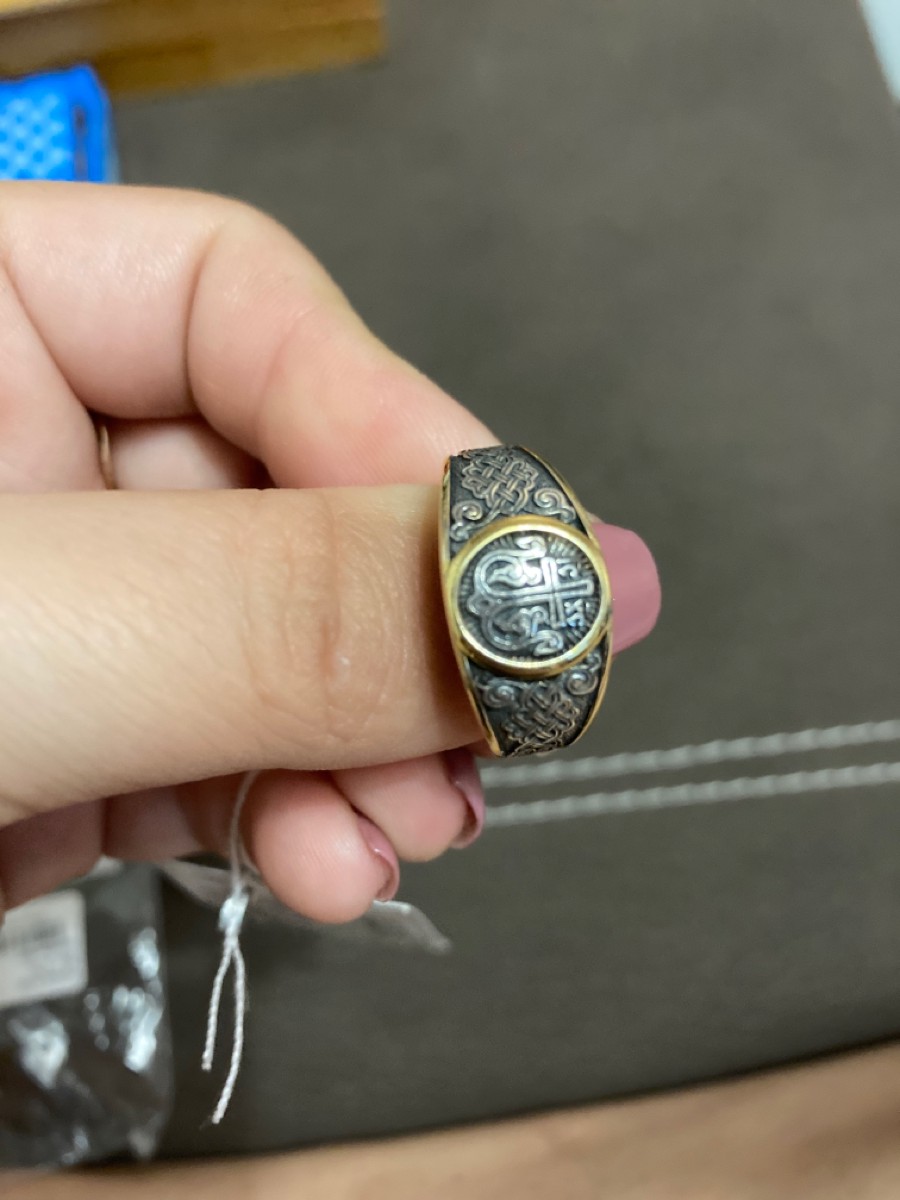 Диамида Кольцо Мусульманское Серебряное черненое 925 пробы, Детское / Женское, 7101-035, Аллах велик