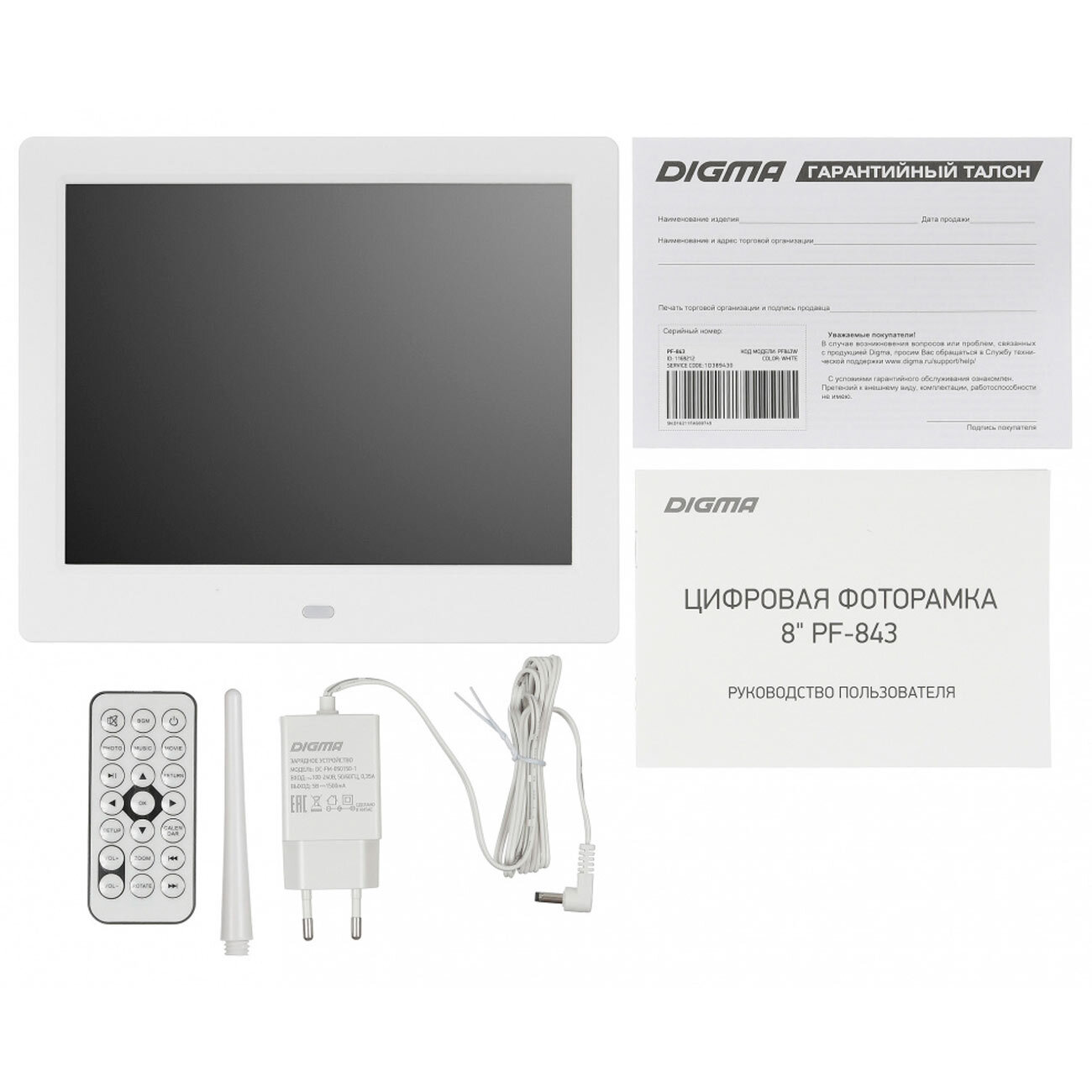 Фоторамка Digma 8" PF-843 IPS 1024x768 белый пластик ПДУ Видео