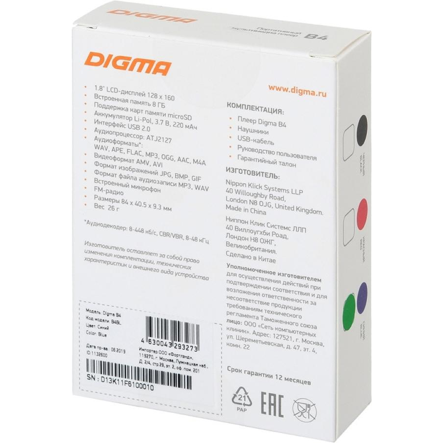 MP3 плеер DIGMA Z4 BT 16Gb черный/1.5"/FM/microSDHC/clip
