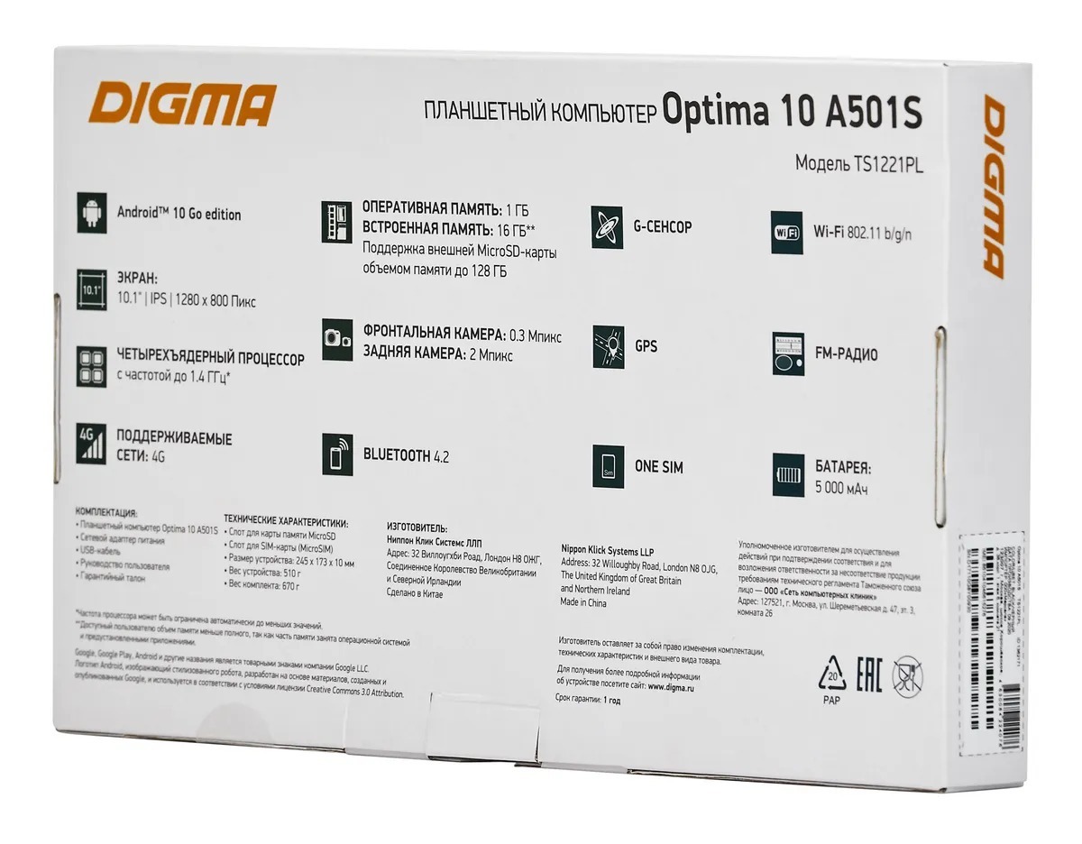 Планшет Digma Plane 1596 3G, 10.1", 16GB, черный. Уцененный товар
